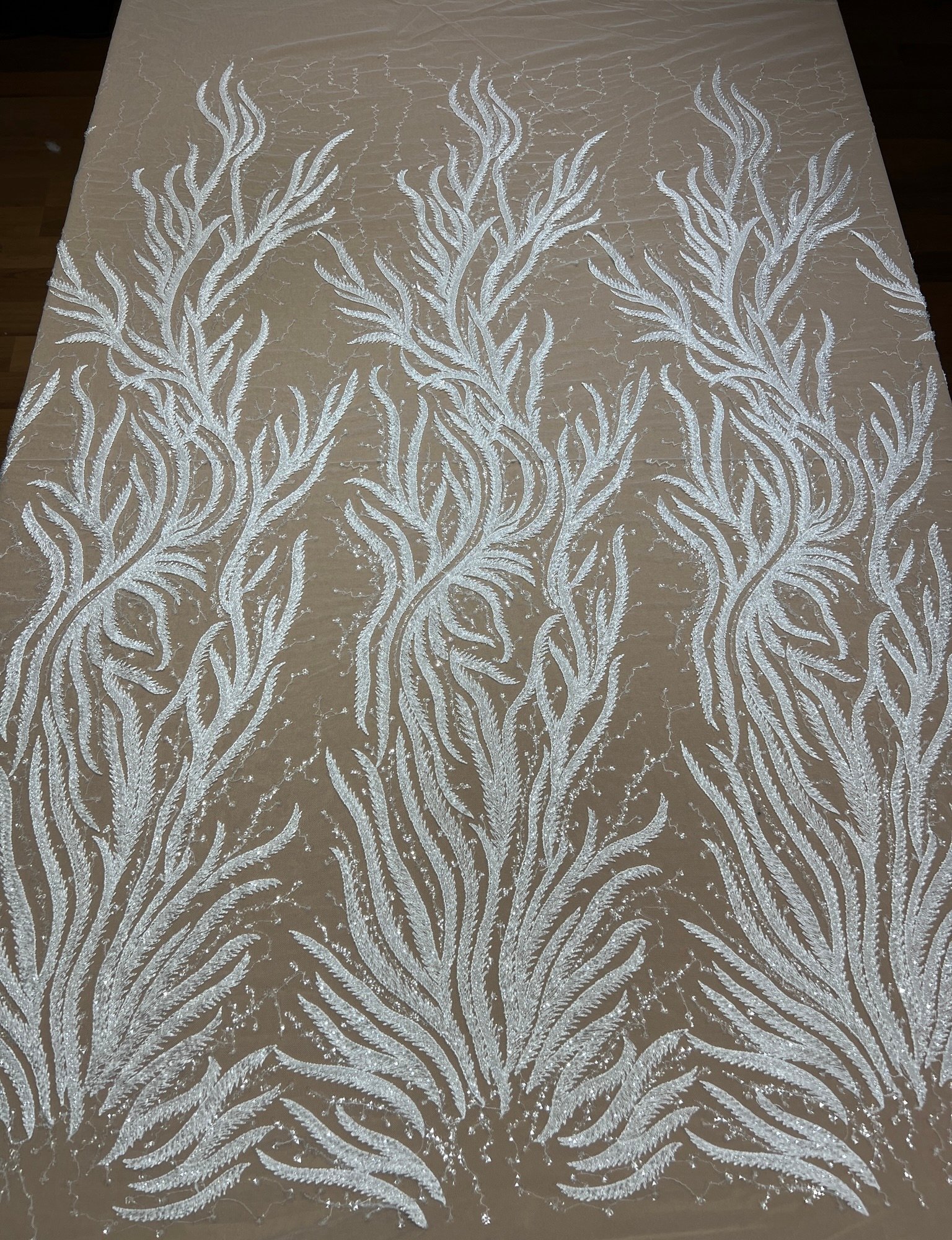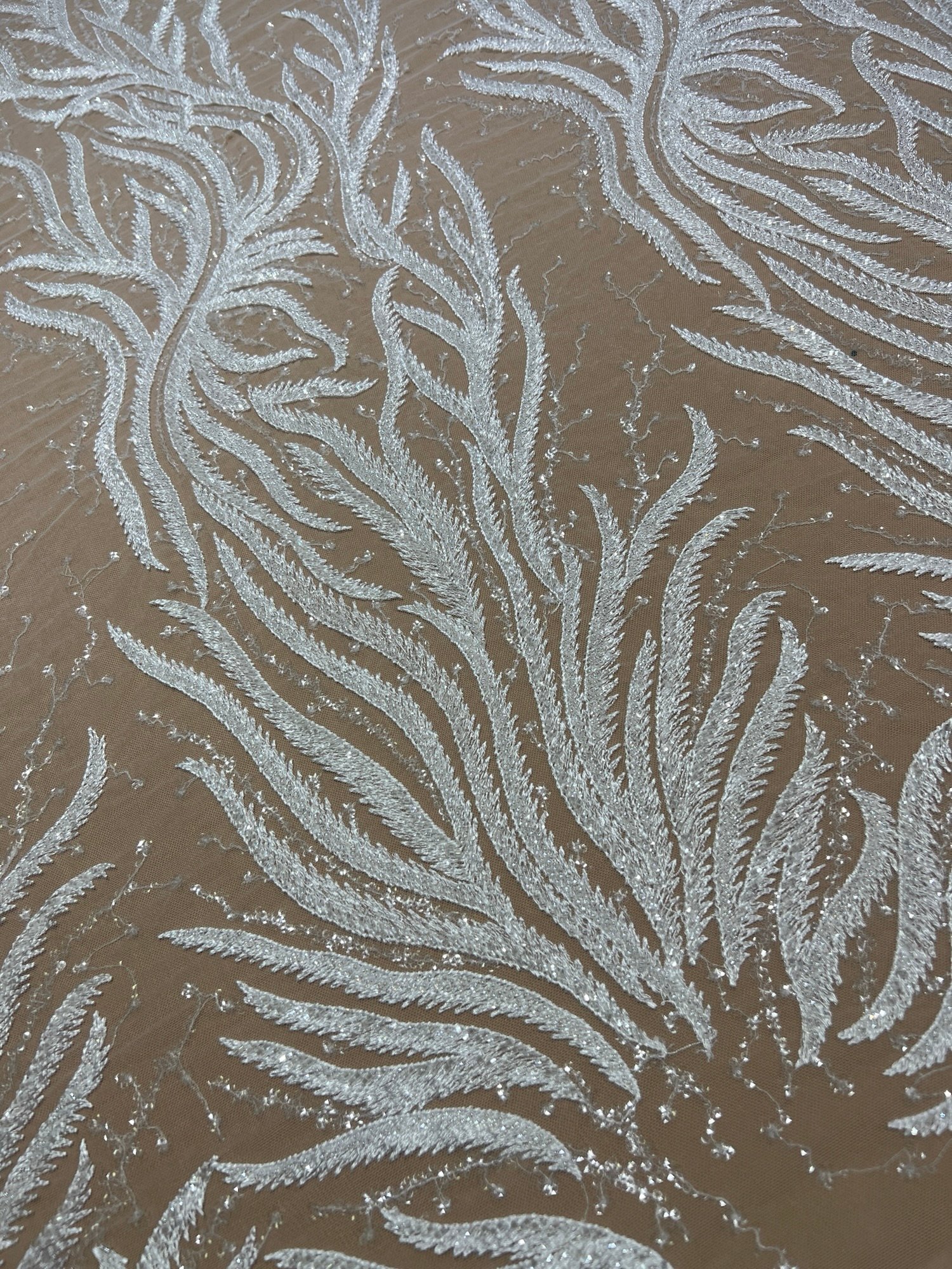 Texture: Soft lace base with bold embroidered lines enriched with beadwork