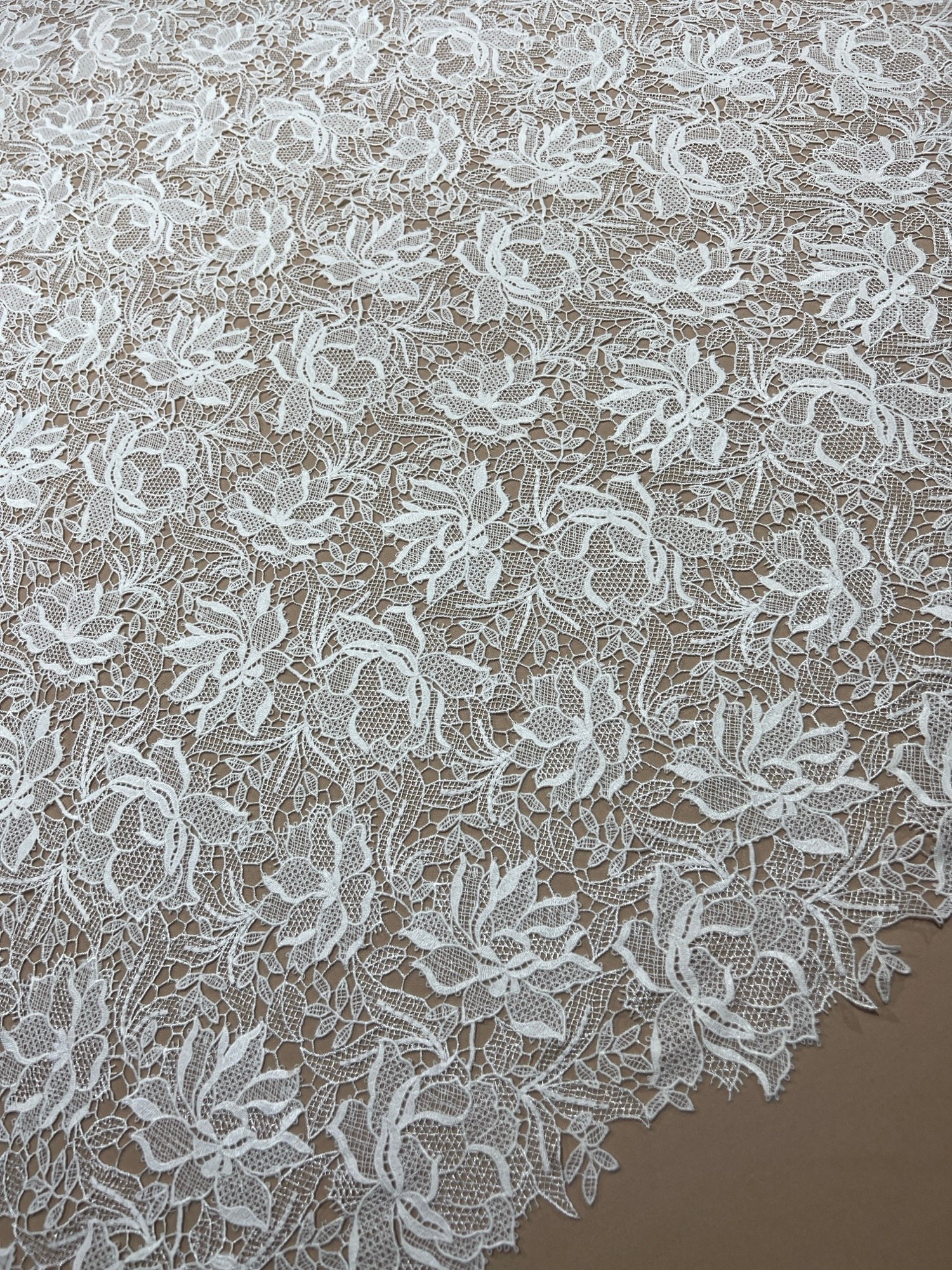 Fabric type: Bridal fabric with delicate flower embroidery
