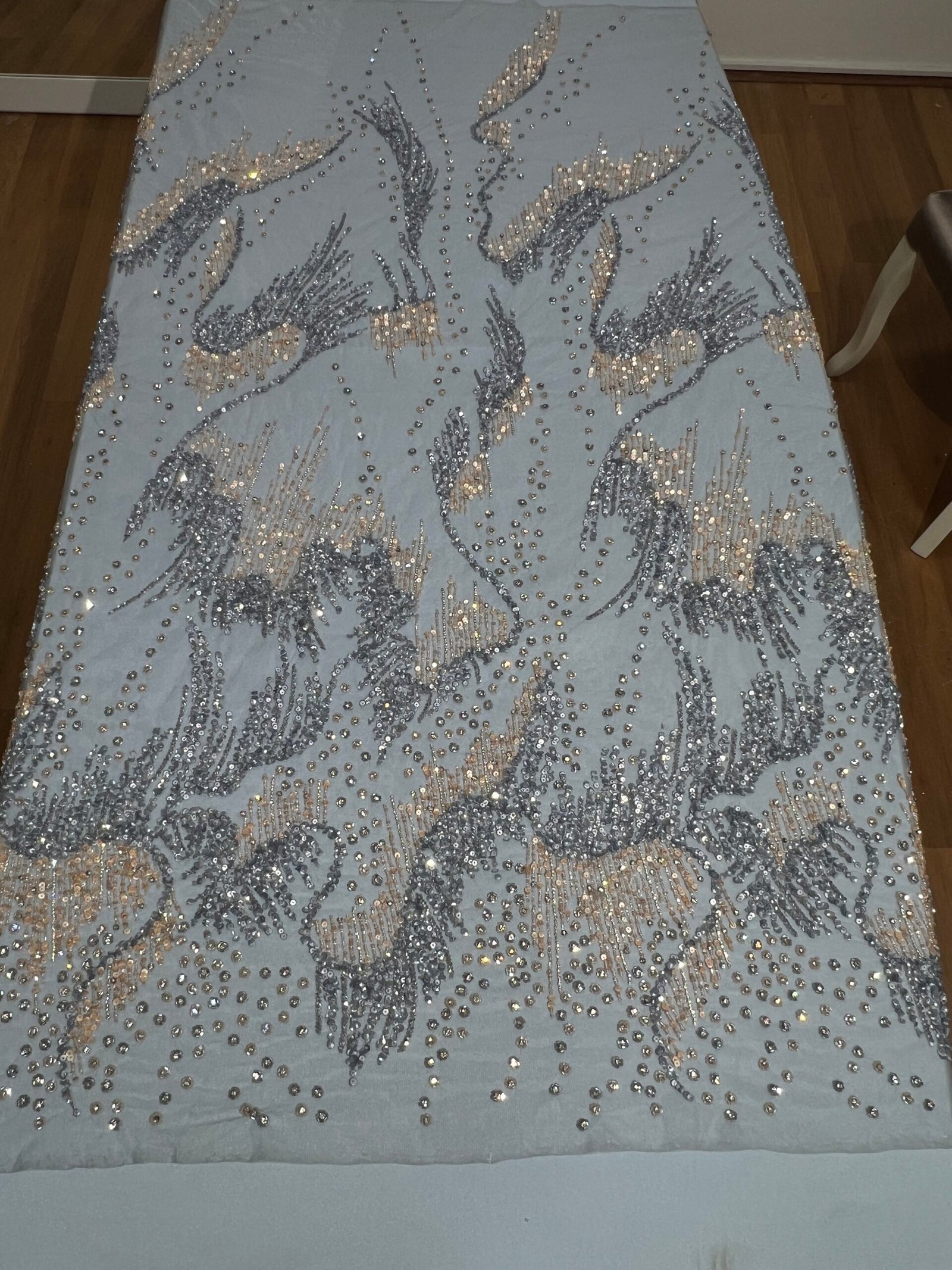 • Texture: Luxurious fabric with raised beadwork and shimmering stones