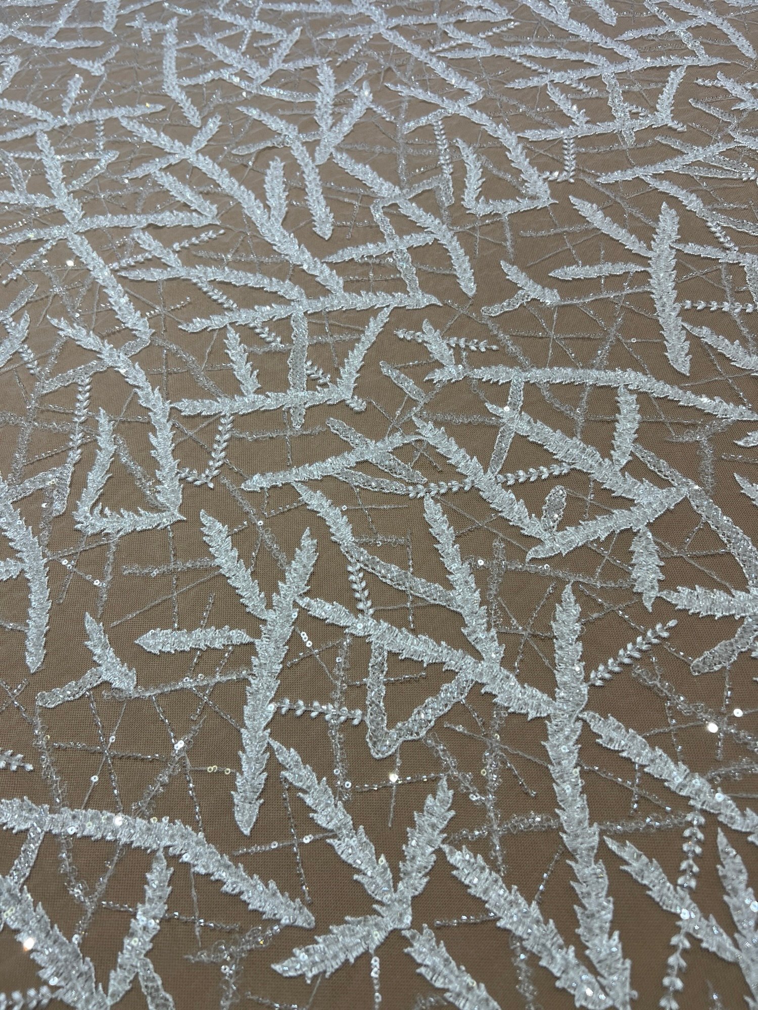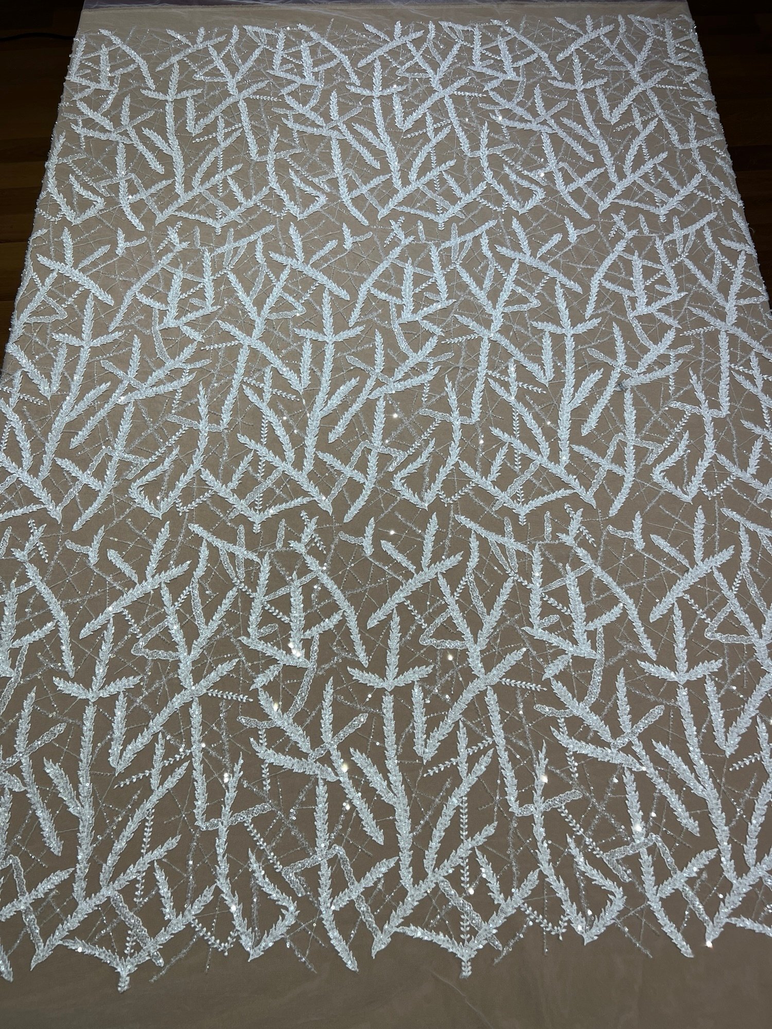 Fabric type: Bridal lace with embroidered vine and leaf design
