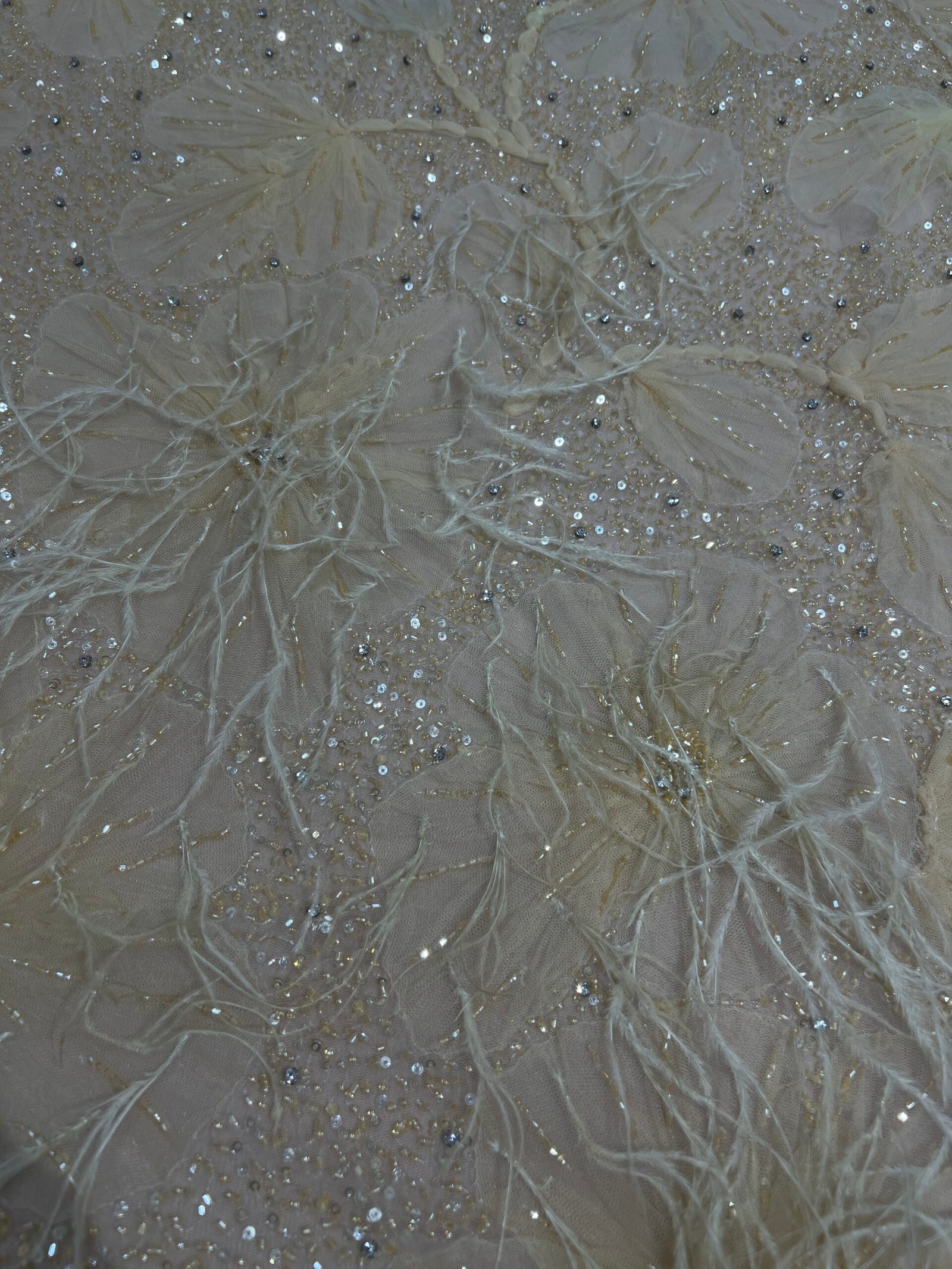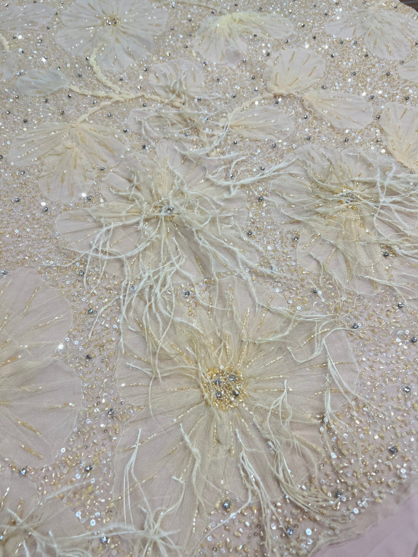 Fabric type: Embellished nude fabric with 3D flowers and beads
