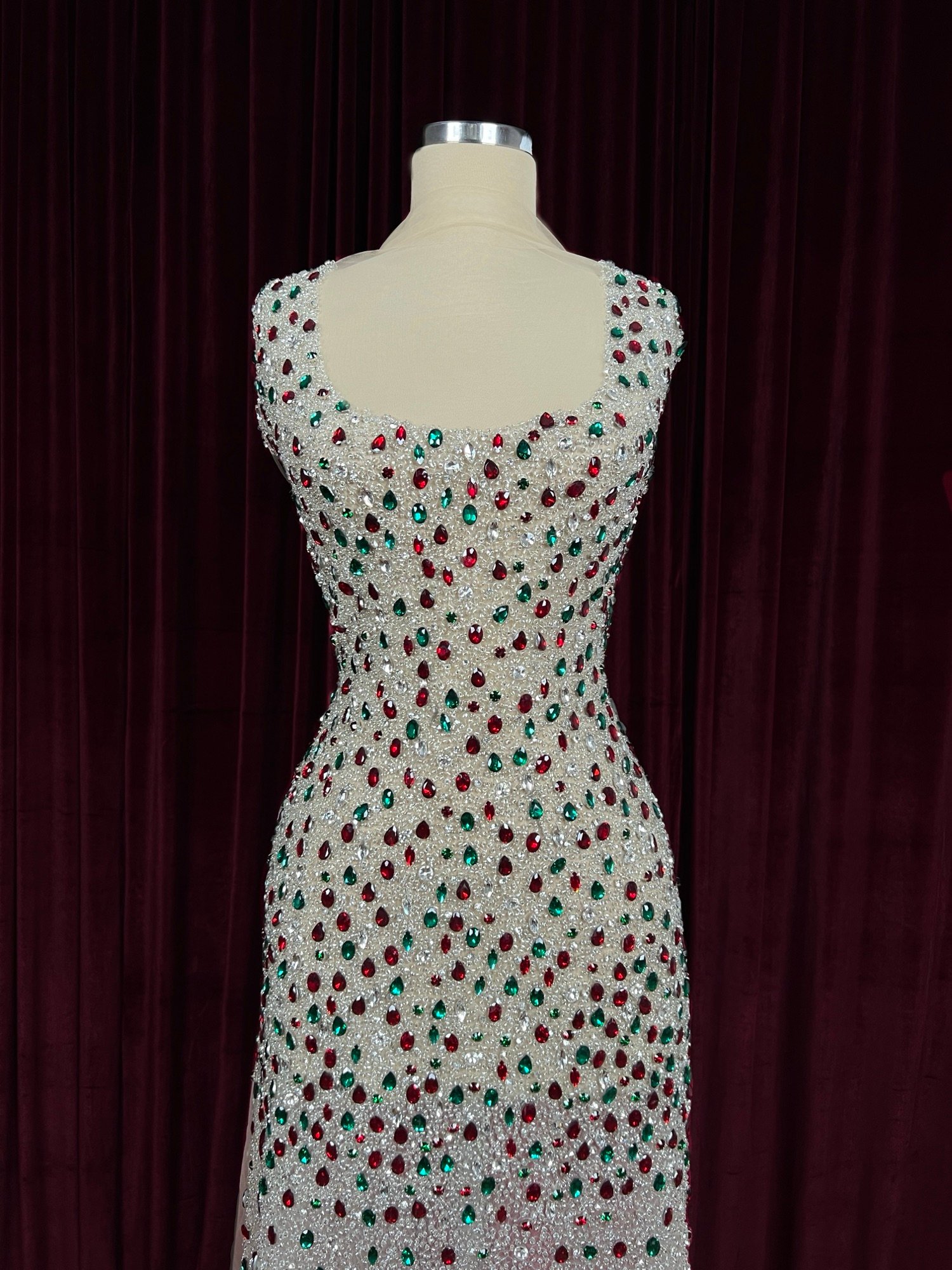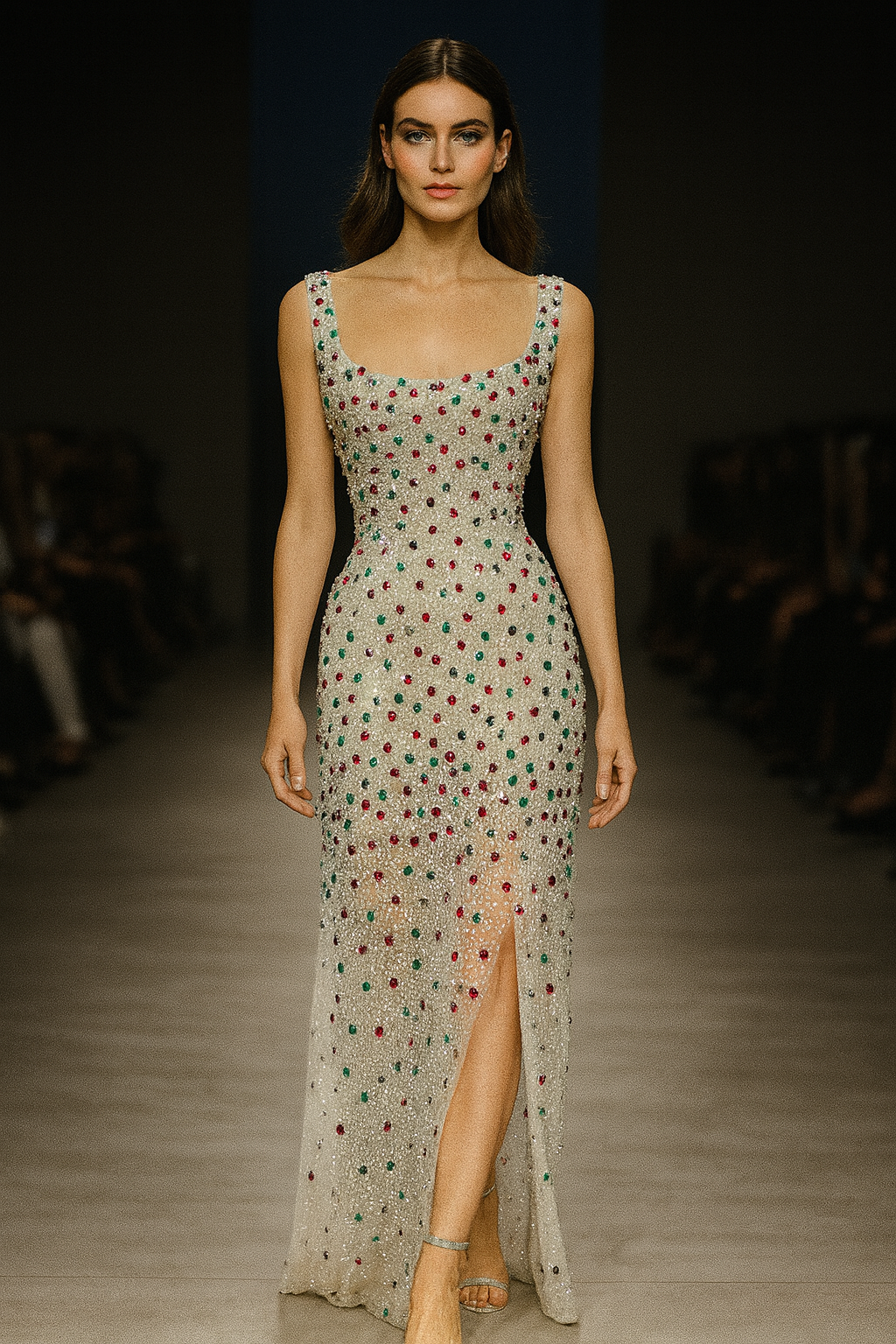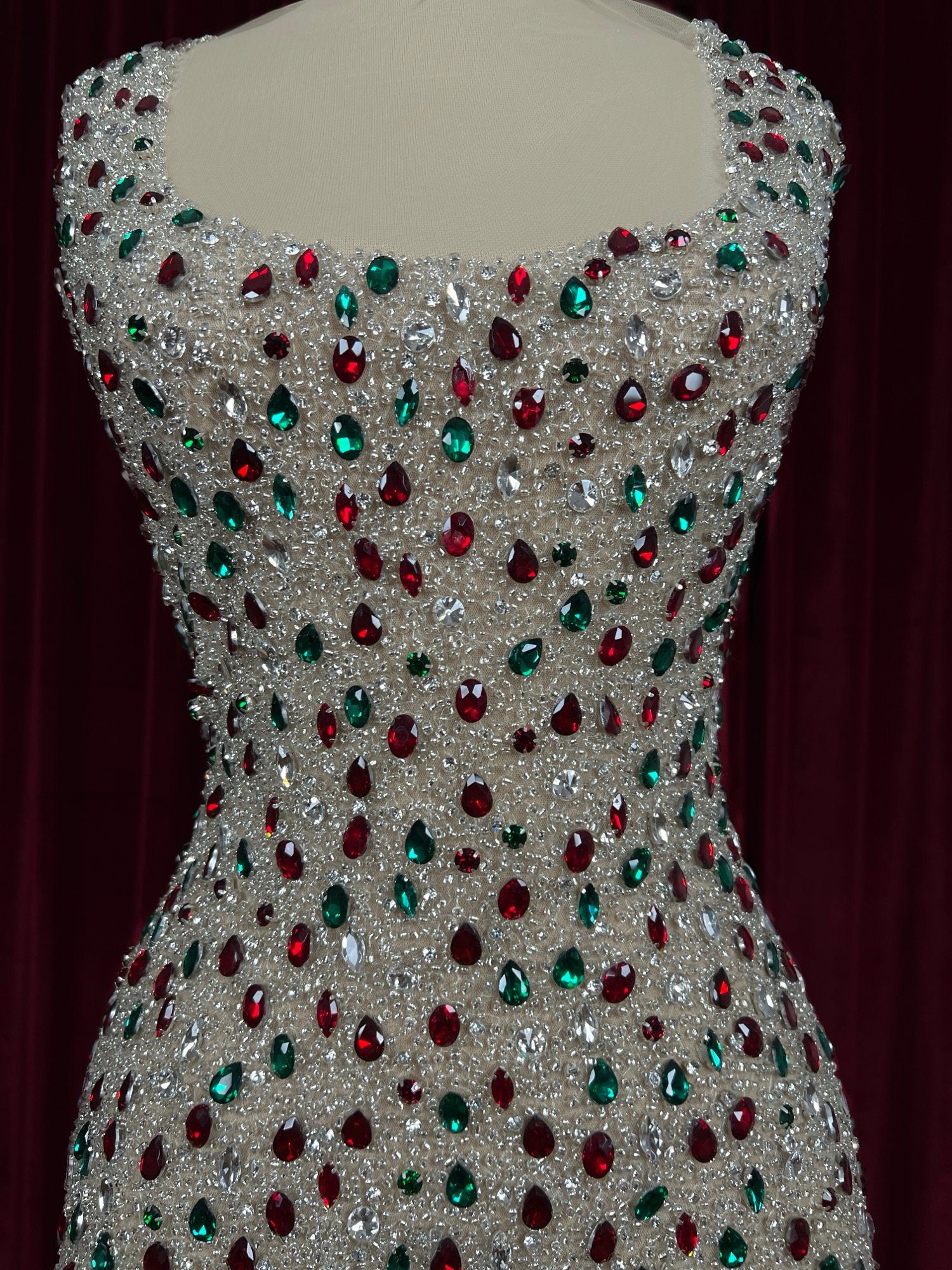 Bold, radiant, and unforgettable — Lumina is a couture dress panel where vibrant red and green stones unite in dazzling brilliance. Perfect for gowns that demand attention and artistry.