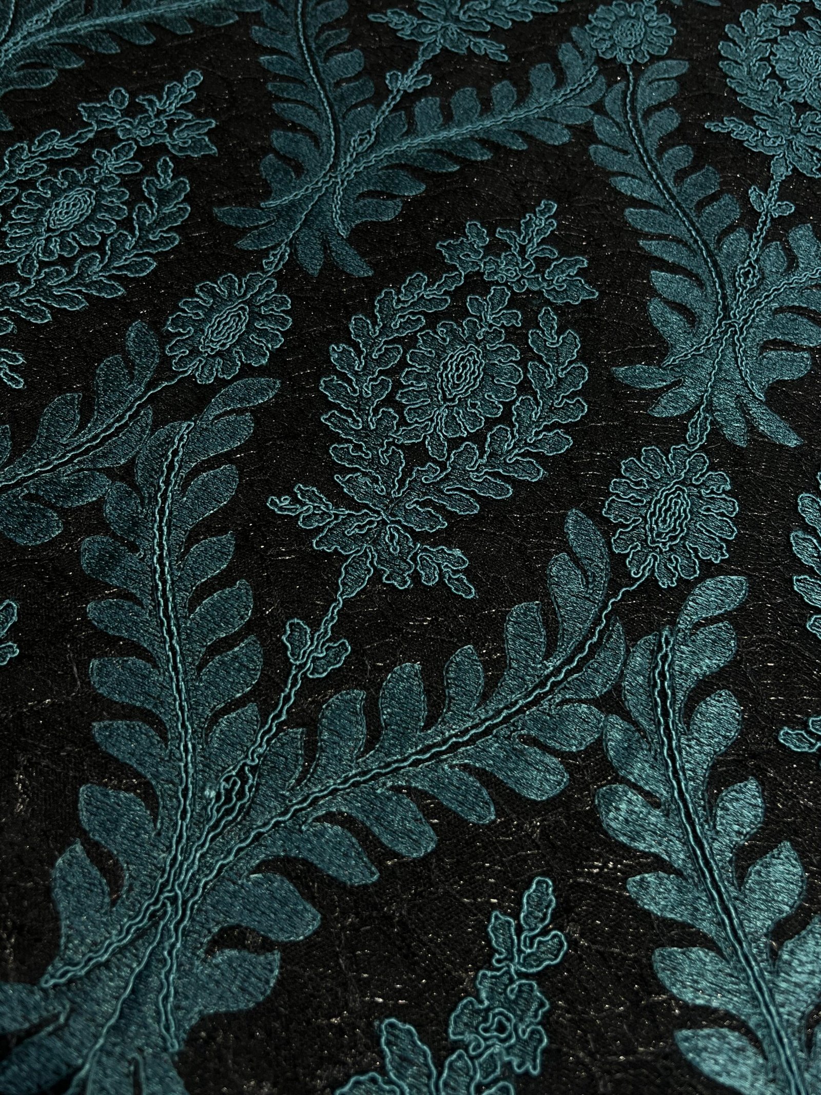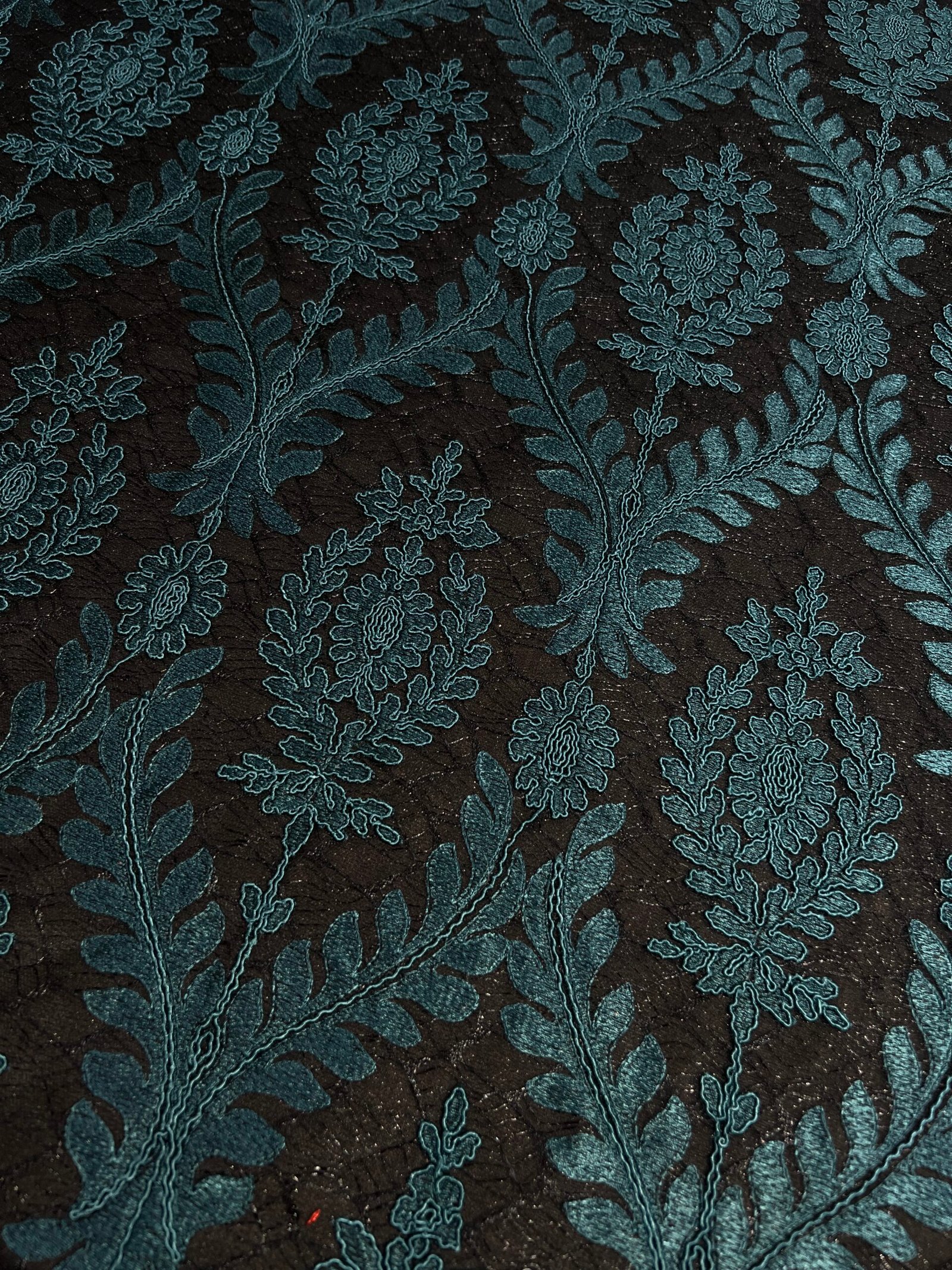 Élégance is a refined fabric crafted on a classic French lace base, adorned with perfectly symmetrical embellishments that create balance, artistry, and timeless beauty. With intricate cordon work and detailed embroidery, it embodies sophistication for couture at its finest.