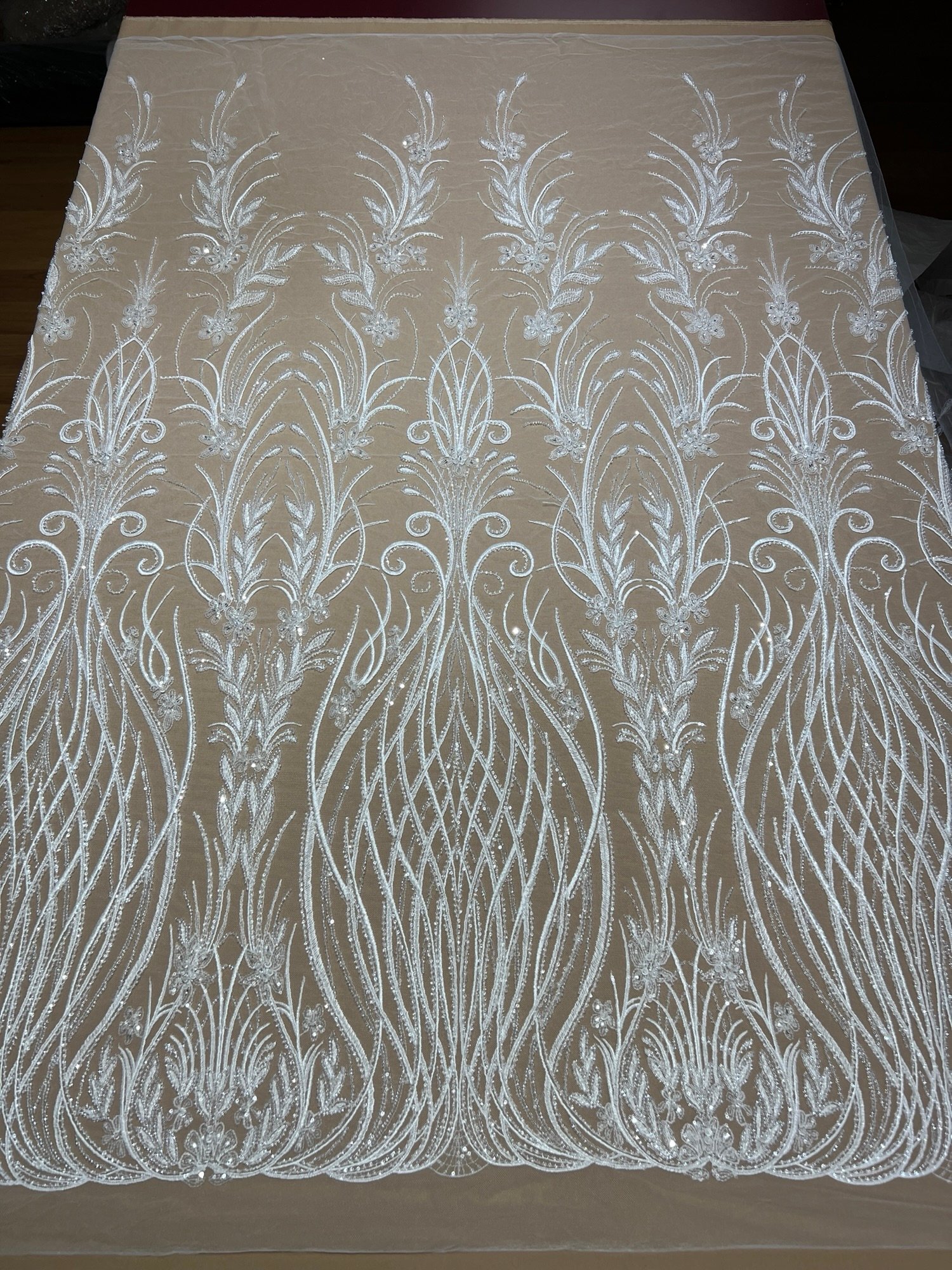 • Fabric type: Off-white bridal lace with ornate embroidery