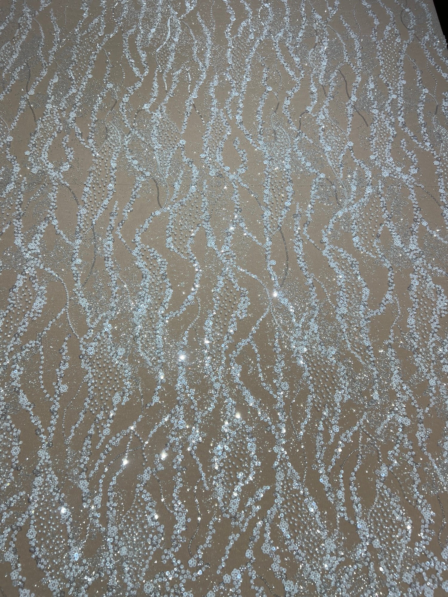 Texture: Soft lace base richly embroidered with dense beadwork and pearls for a luxurious, radiant finish