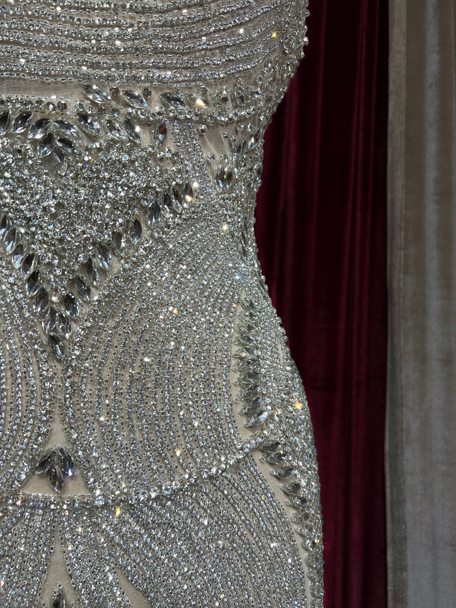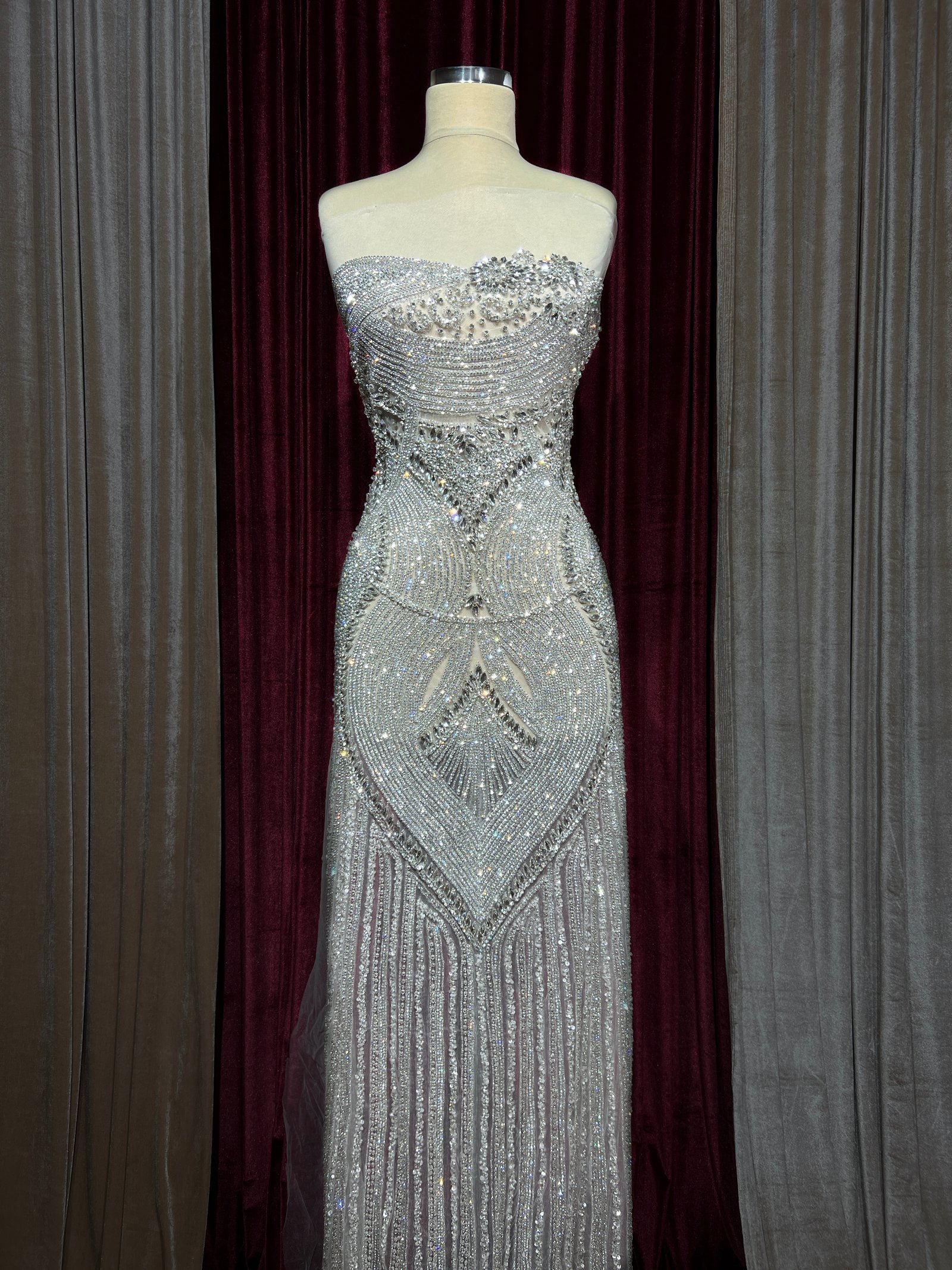 Fabric type: Silver dress panel with beads and stones