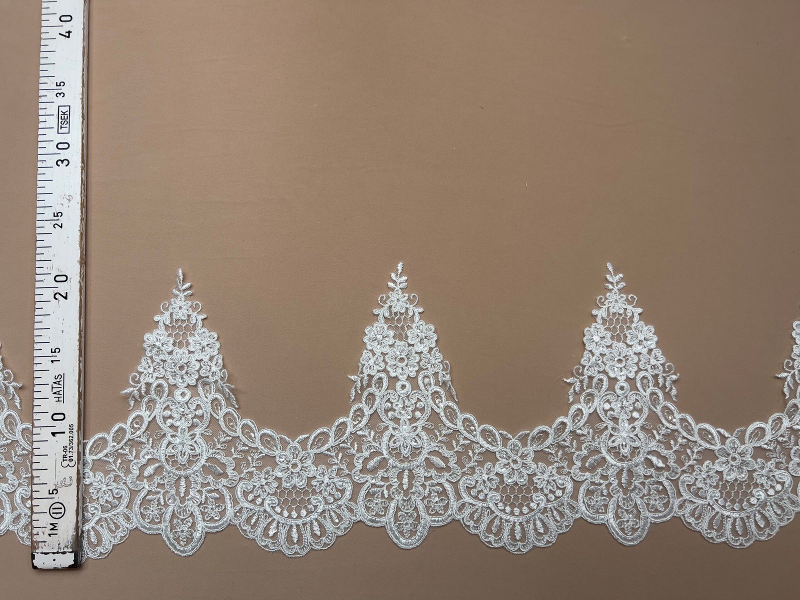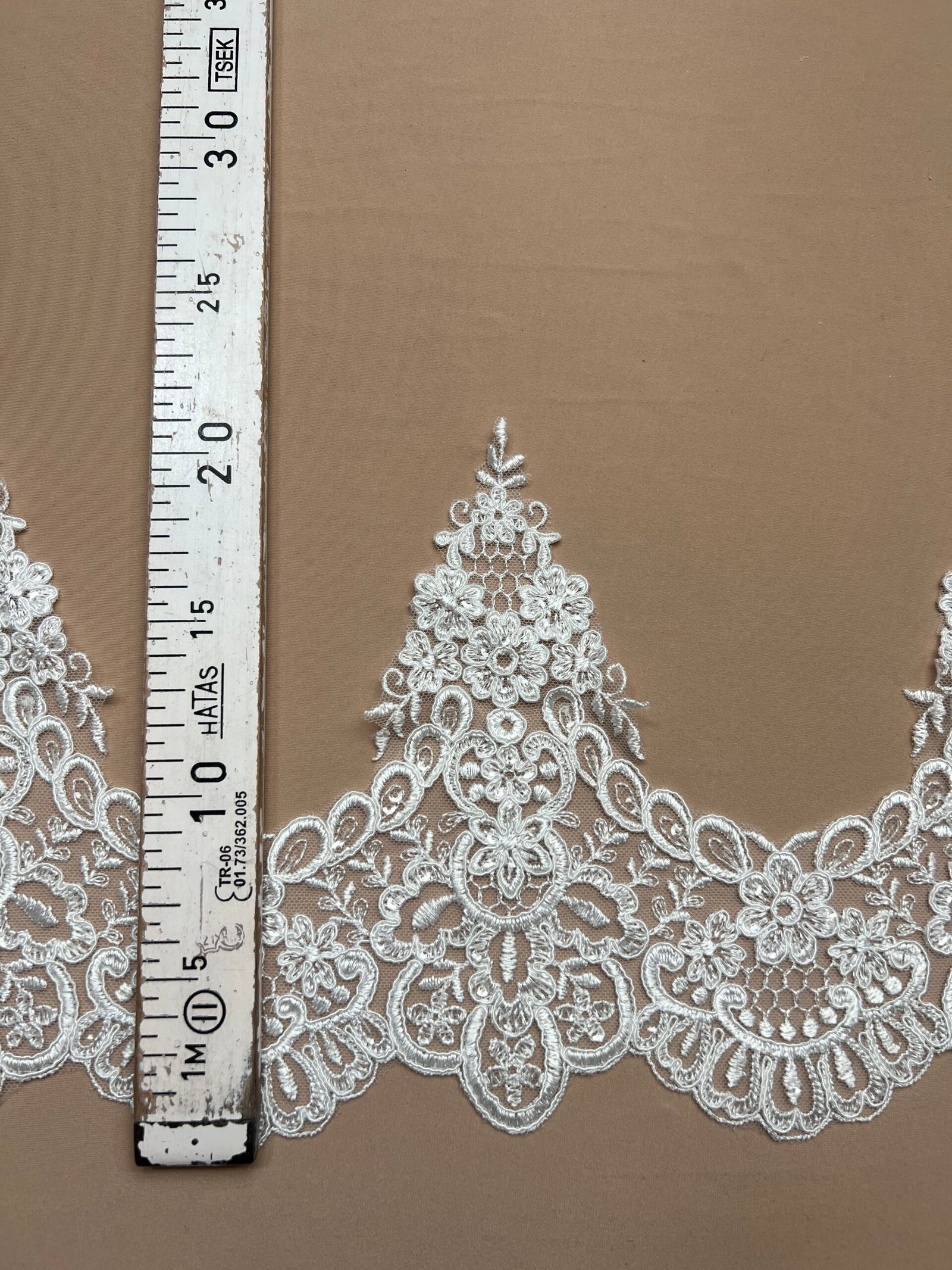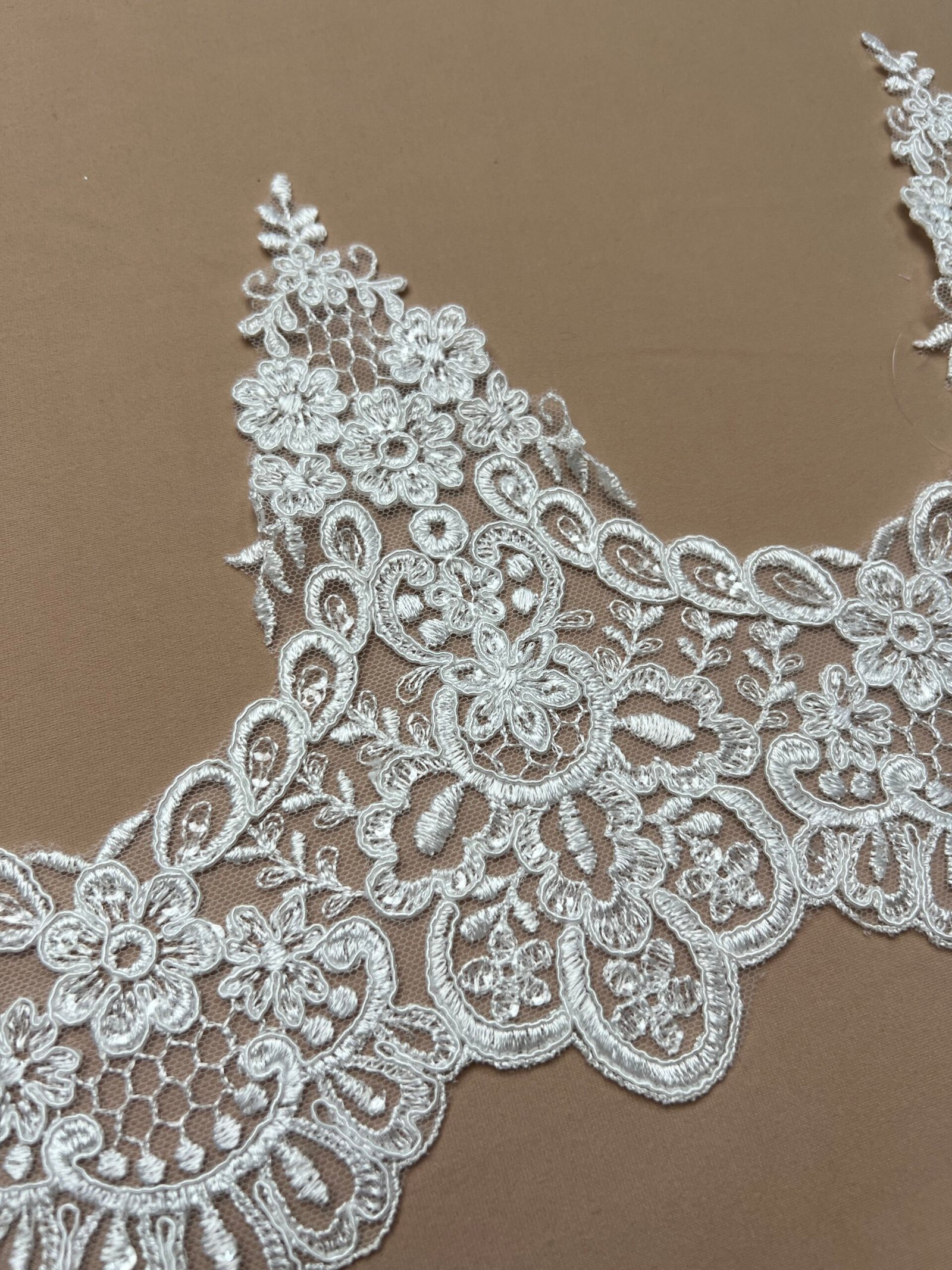 • Applications: Bridal gowns, veils, sleeves, overlays, couture borders, and decorative accents