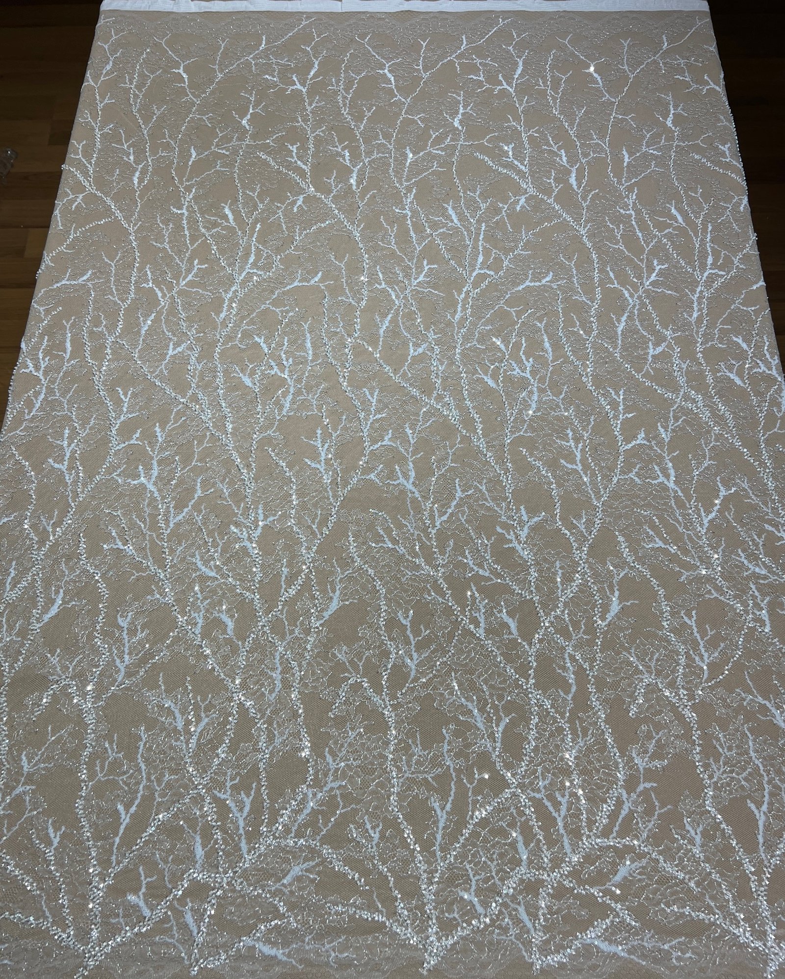 Fabric type: Bridal lace with lightning-inspired linear beaded design
