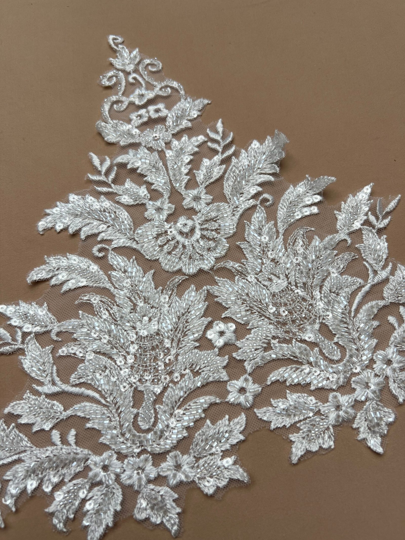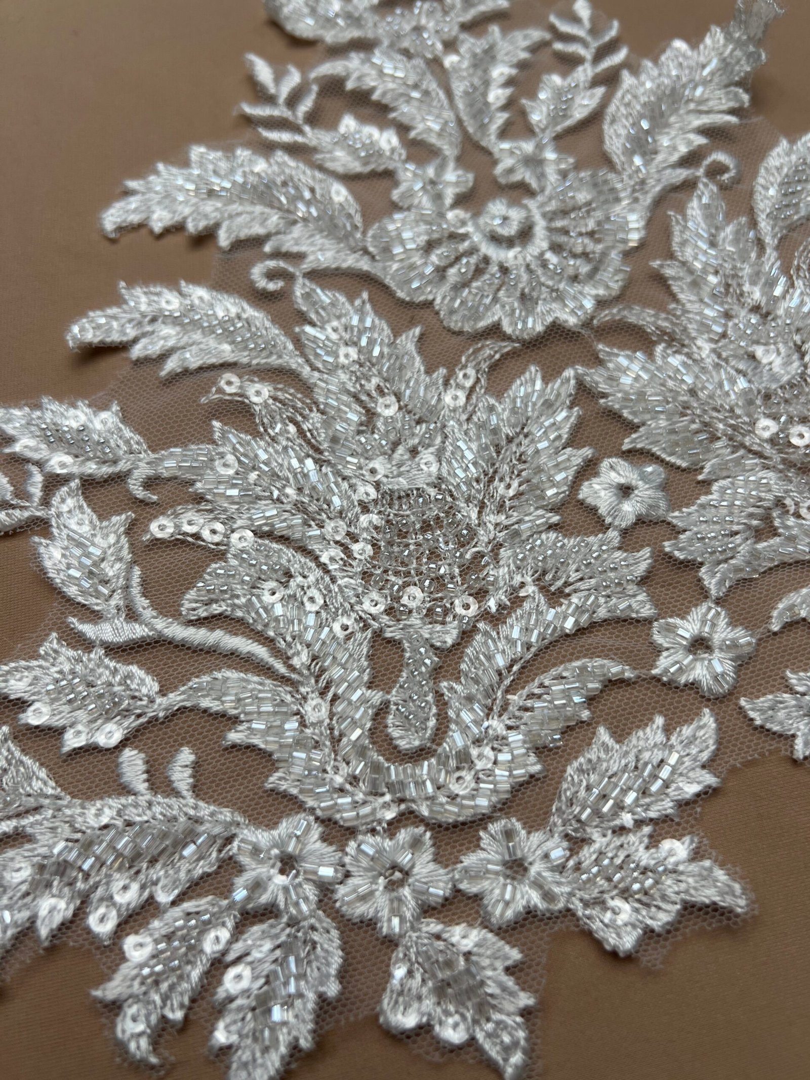 Applications: Bridal gowns, overlays, formalwear, couture detailing, and decorative hems