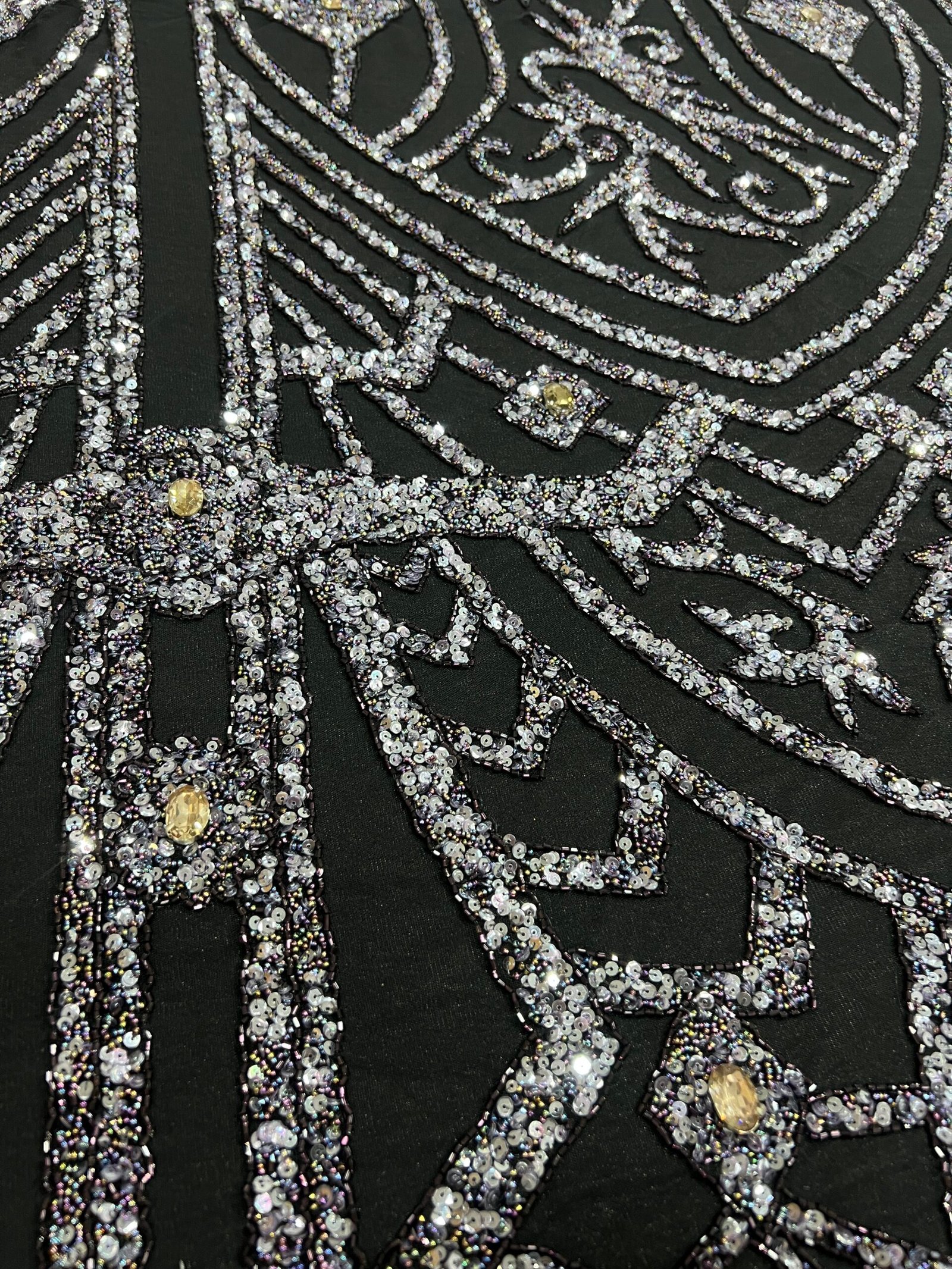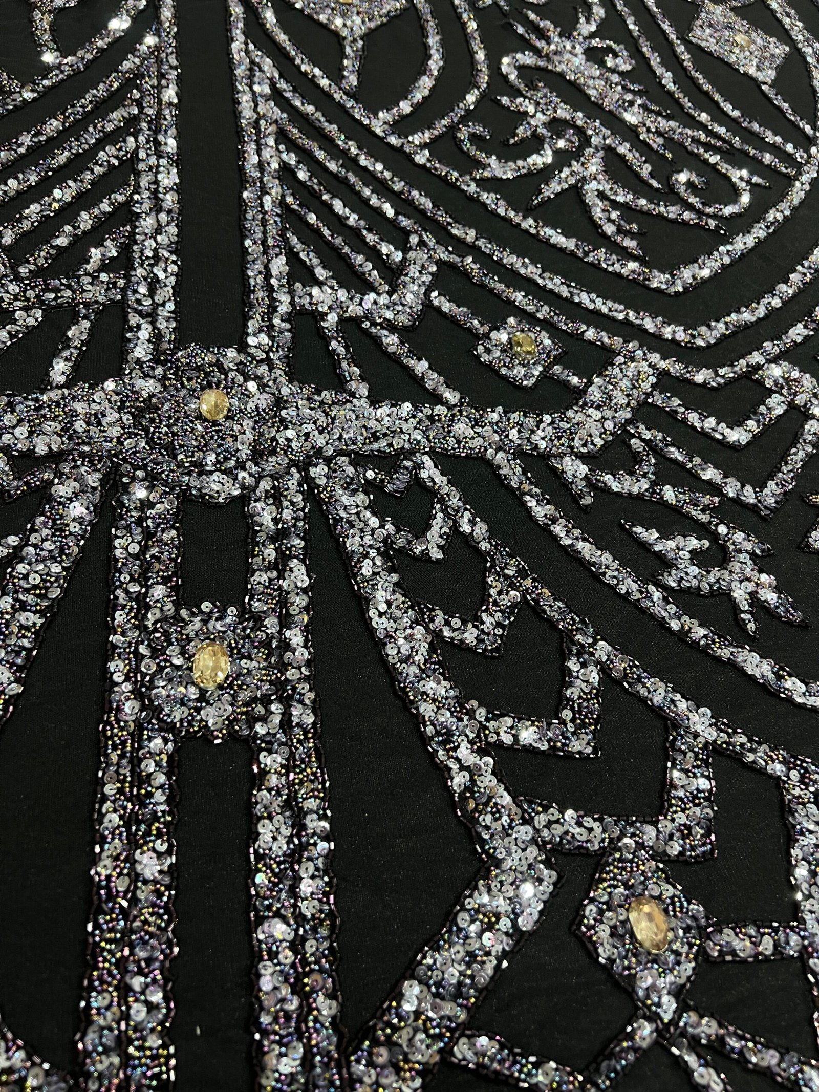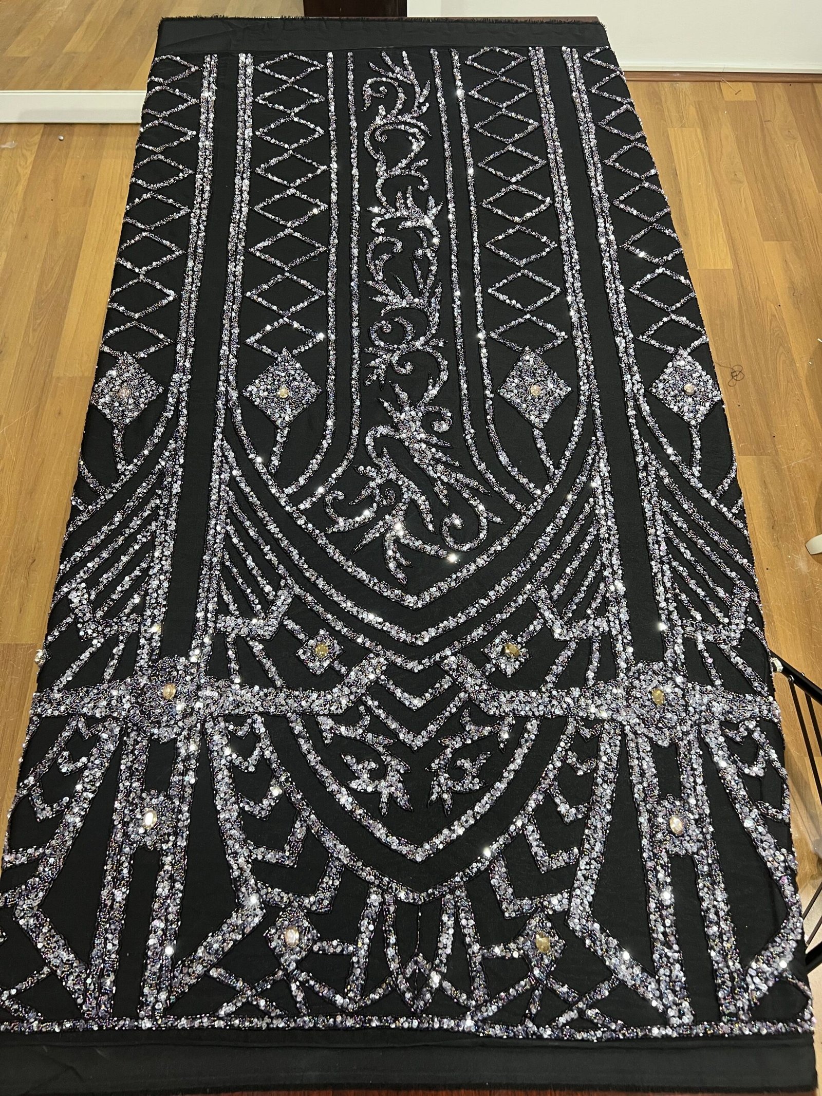 Fabric type: Luxury black fabric with bead and stone embellishments