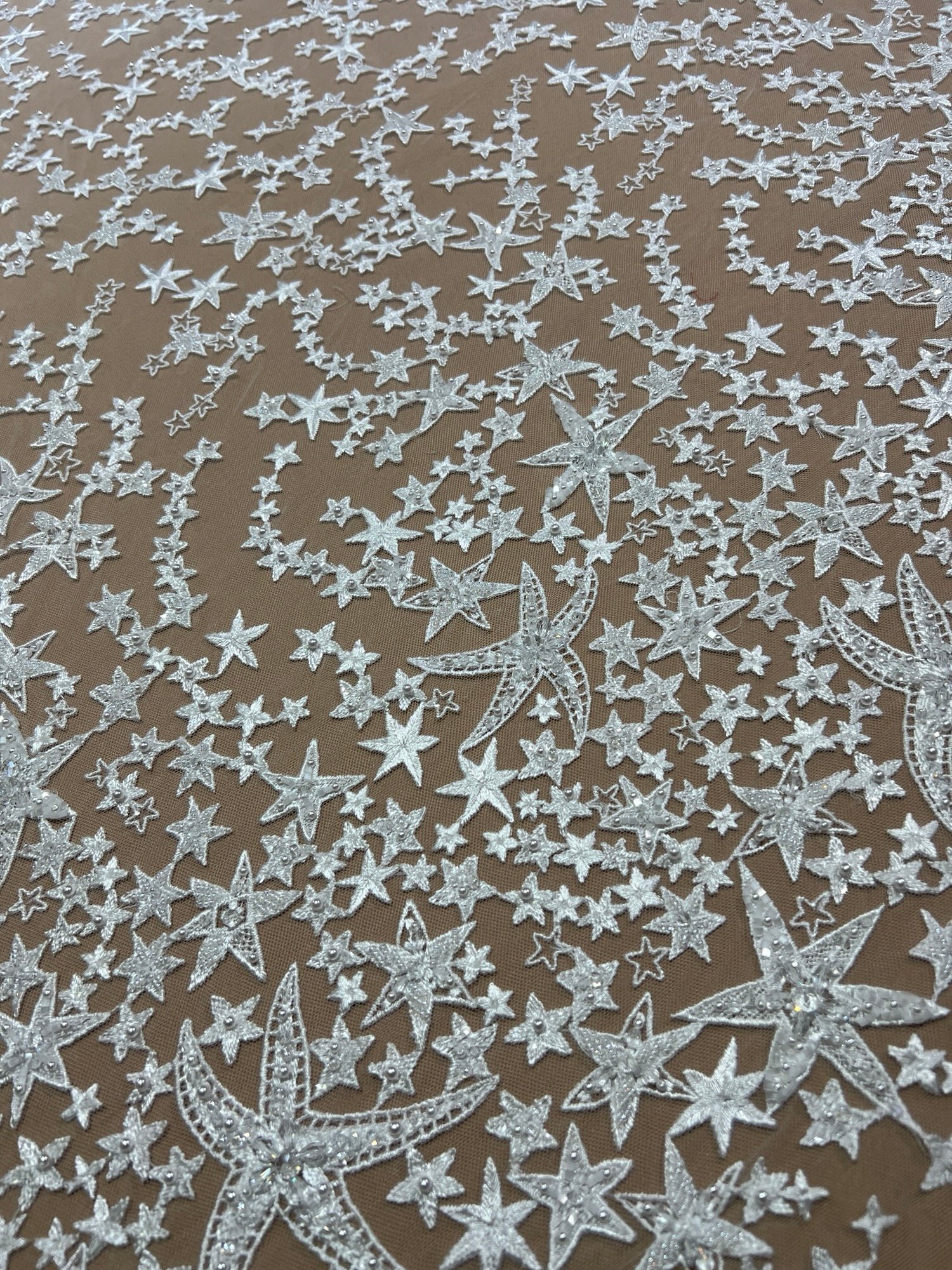 • Embellishments: Heavily beaded stars for luminous sparkle and texture