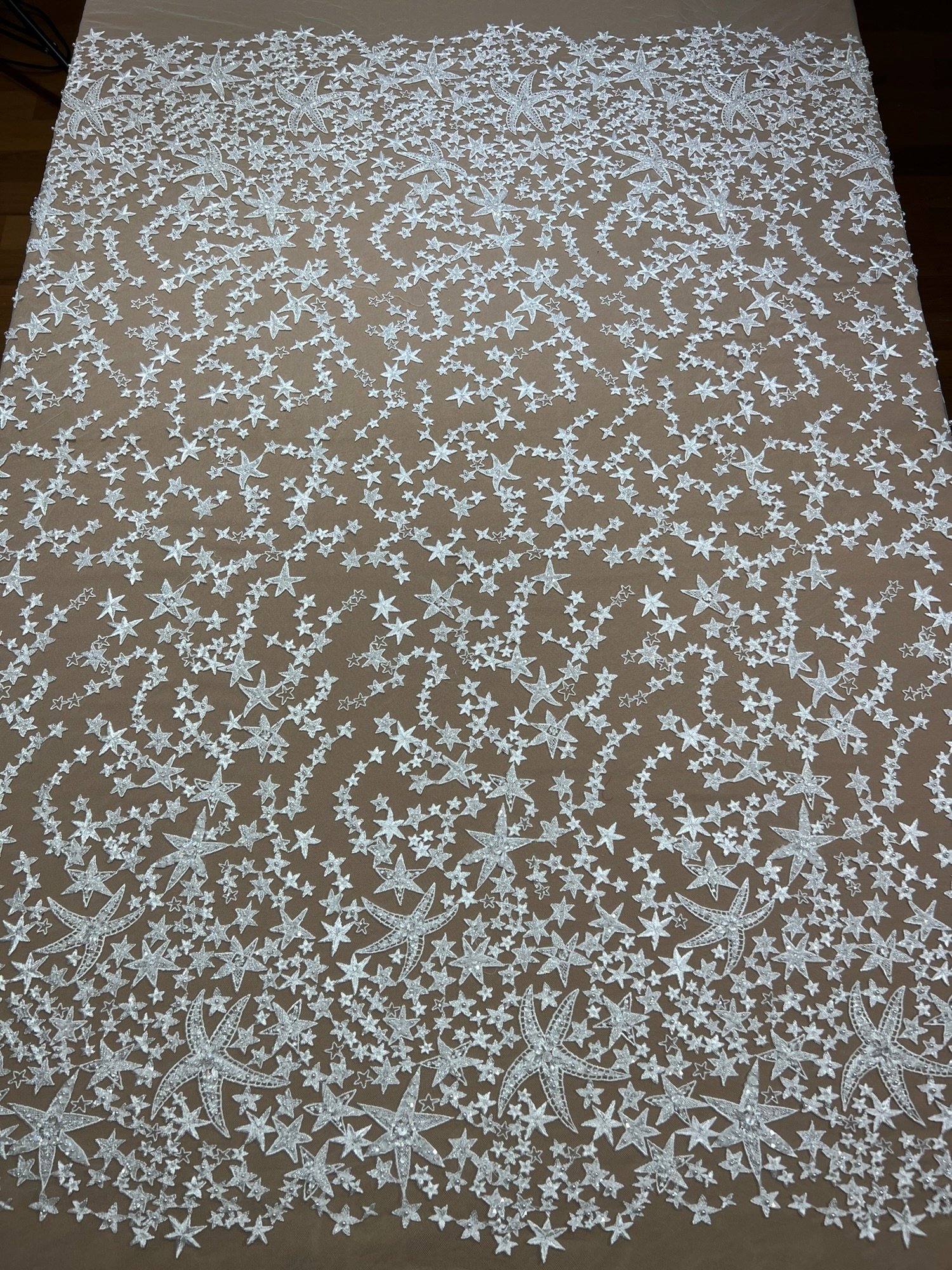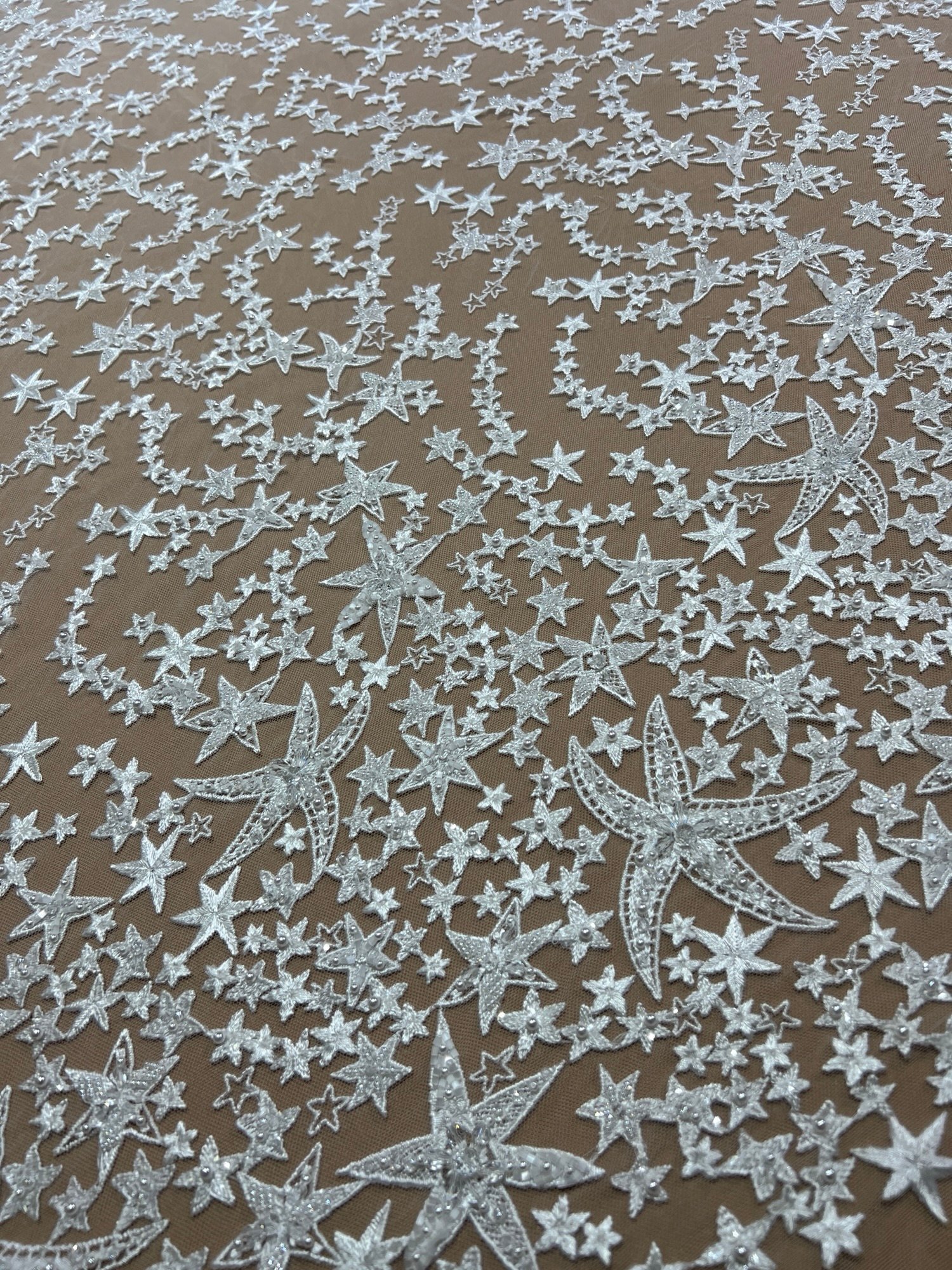 Shine like the night sky with Opal, a bridal lace designed to bring constellation-inspired beauty and sparkling elegance to couture gowns.