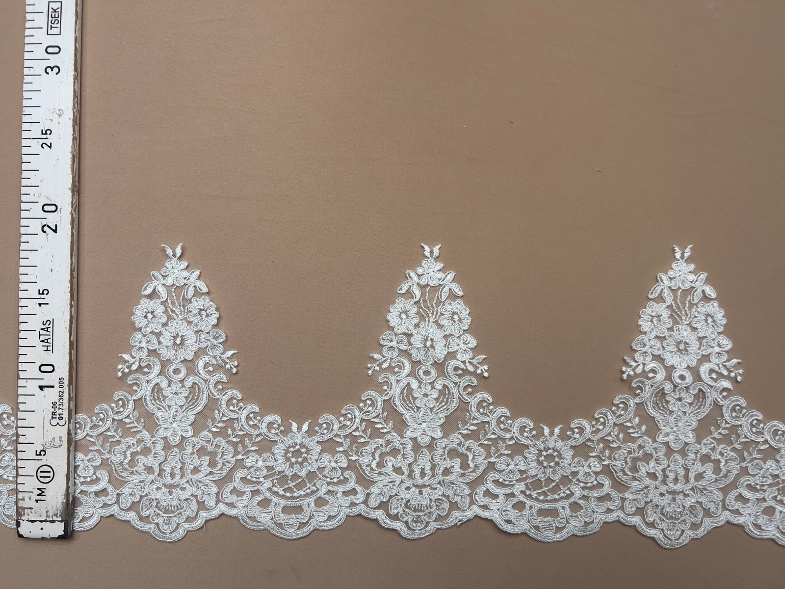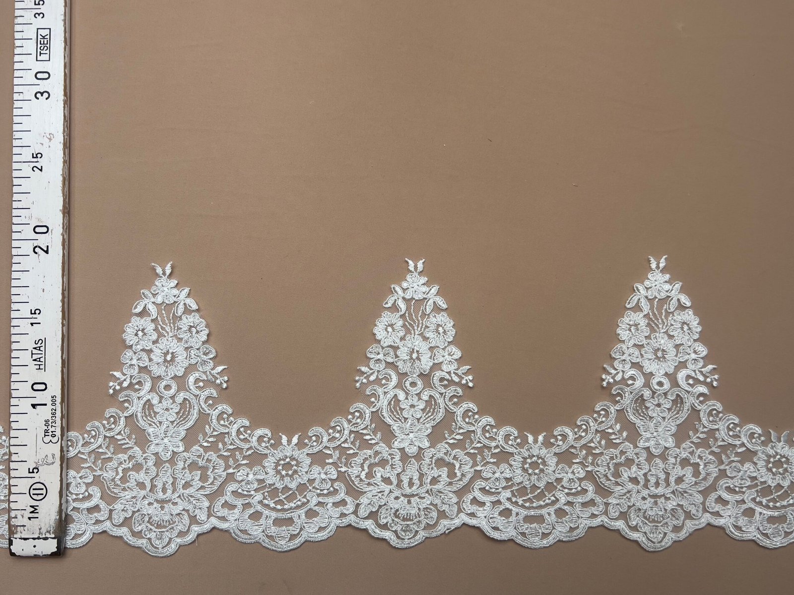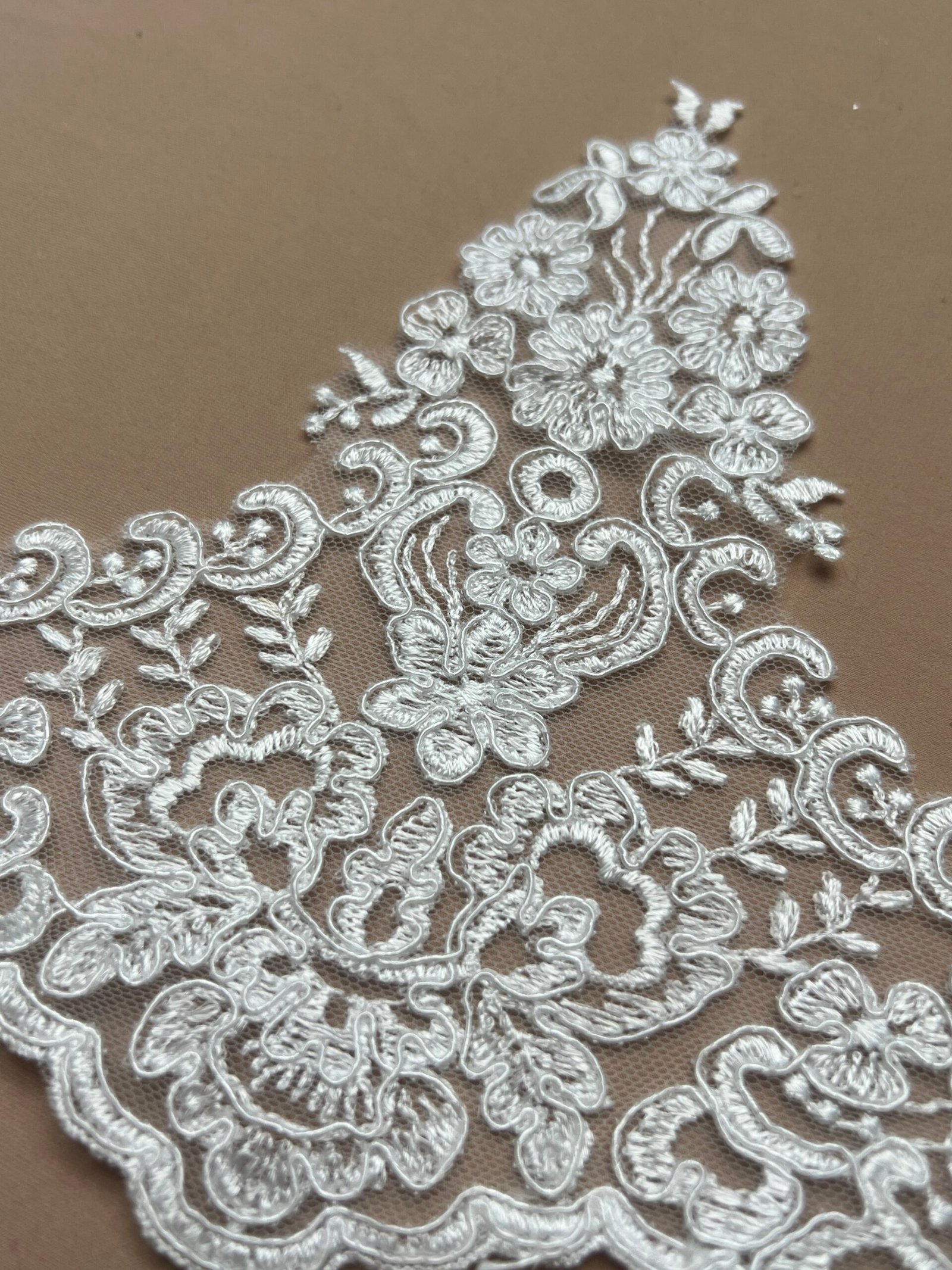 Applications: Bridal accents, borders, sleeves, hems, and fine garment finishes
