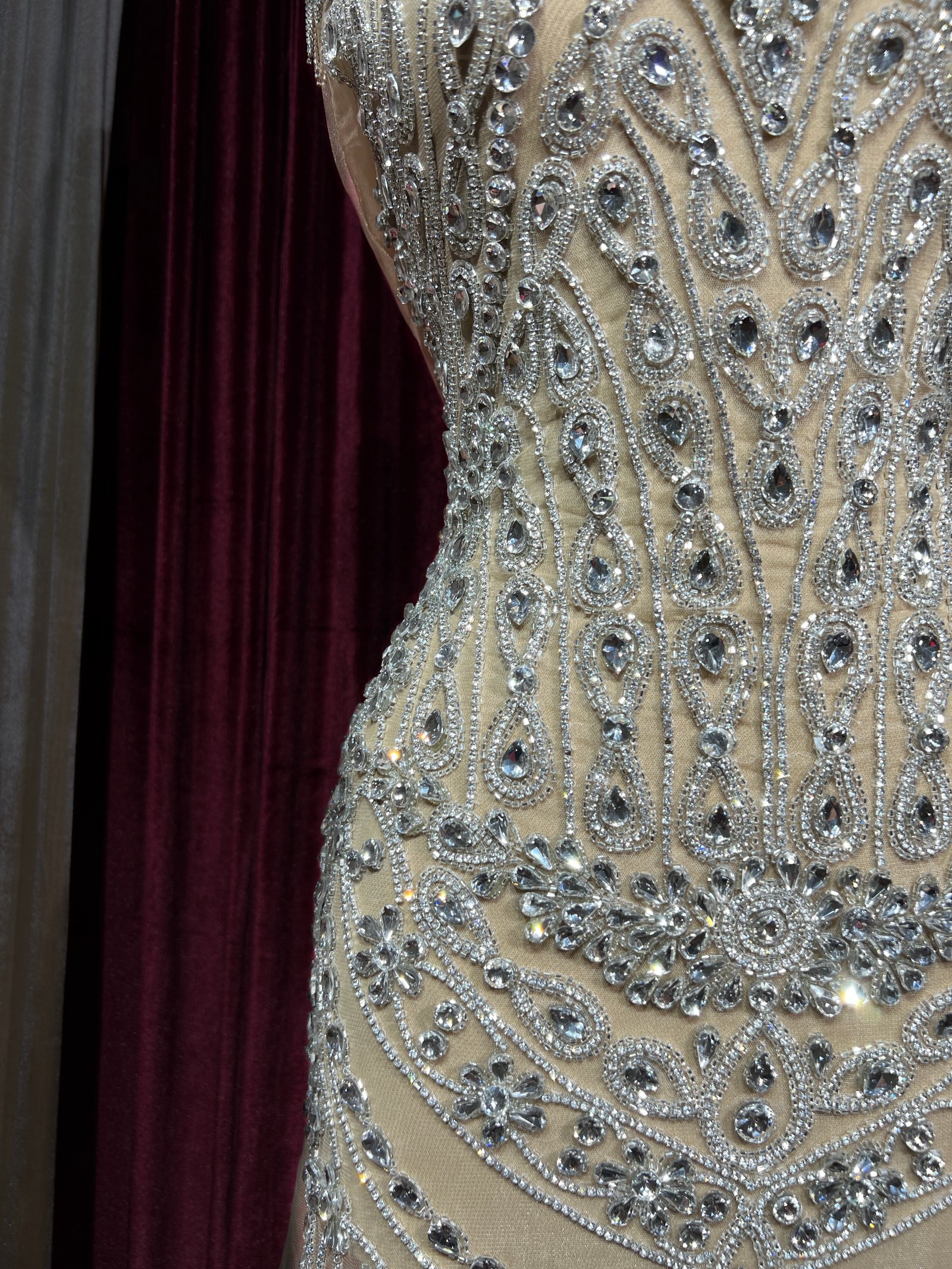 Fabric type: Nude tulle dress panel with stones and beads