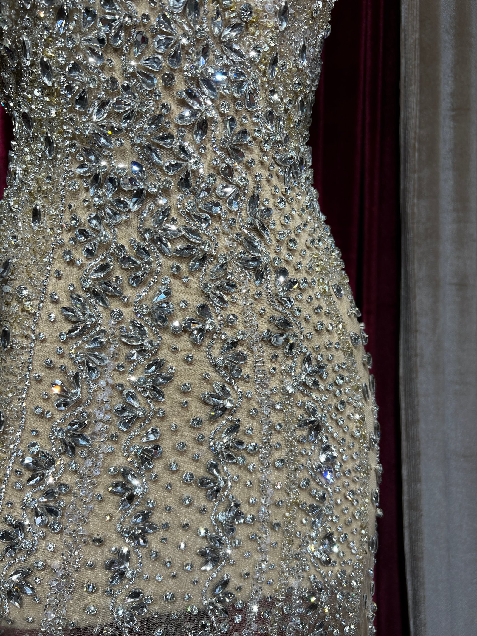 Fabric type: Nude tulle dress panel with bead and stone embroidery