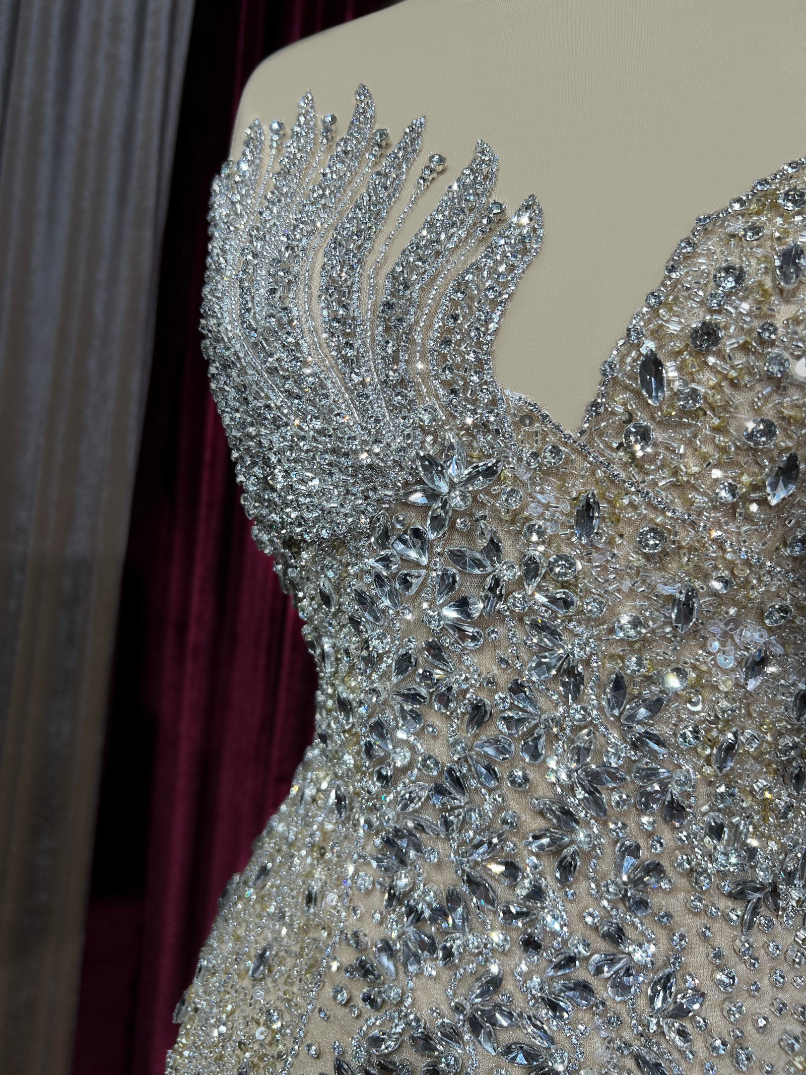 Color: Nude base with silver and gold embellishments