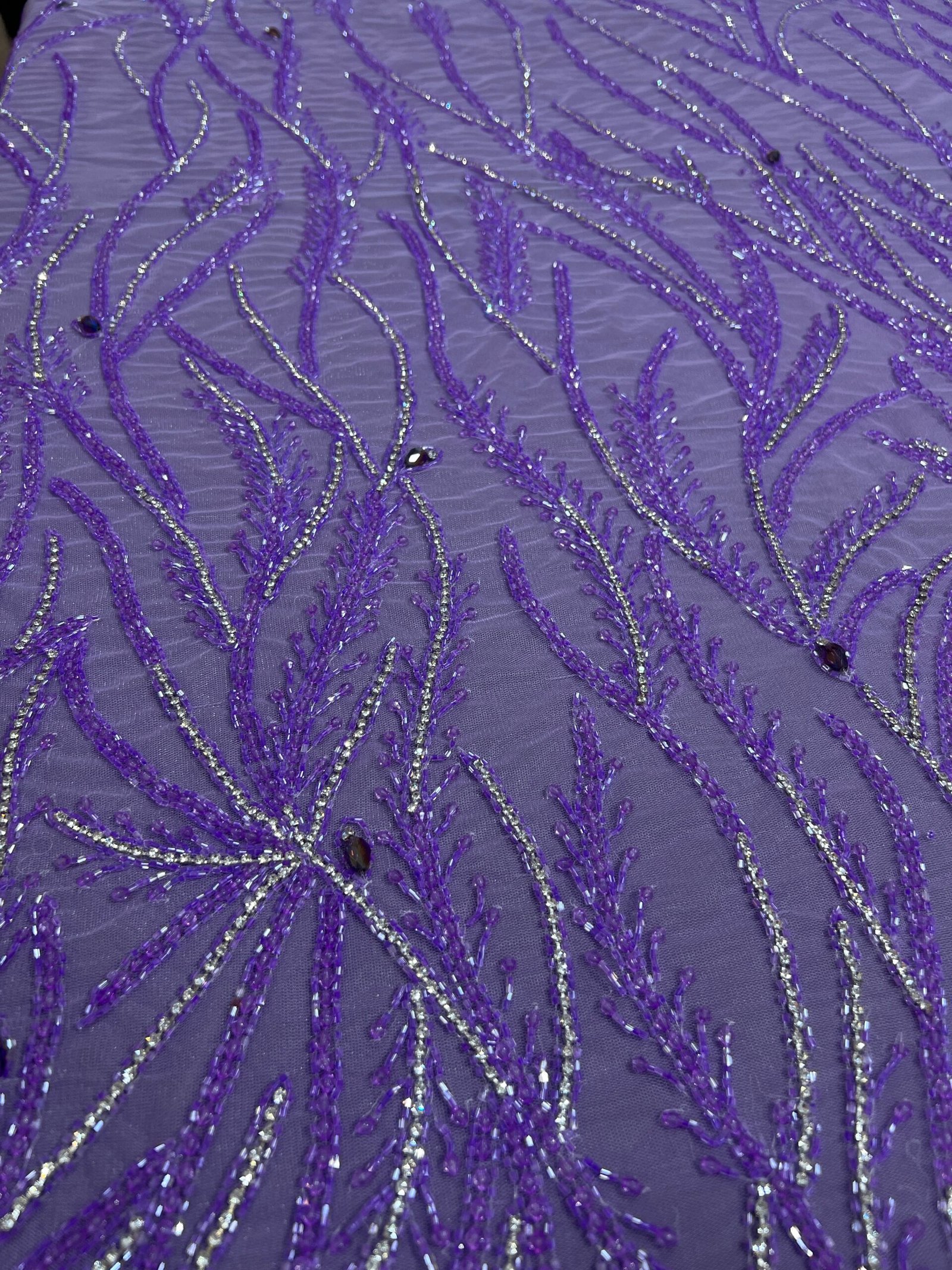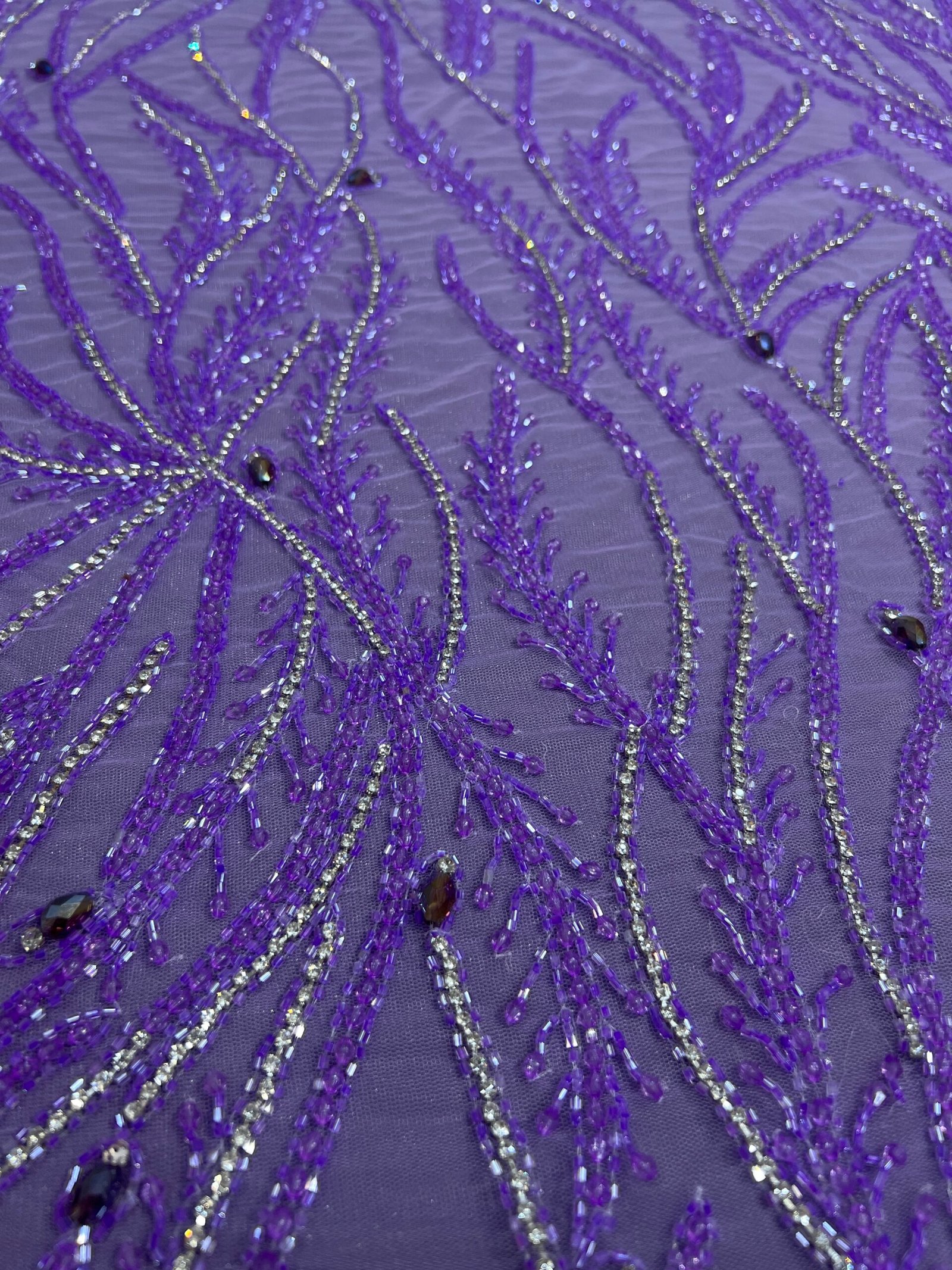 Solvere radiates bold sophistication, featuring a deep purple base embellished with tone-on-tone beads and stones. Accented with silver highlights, it brings depth, elegance, and couture brilliance to every design.