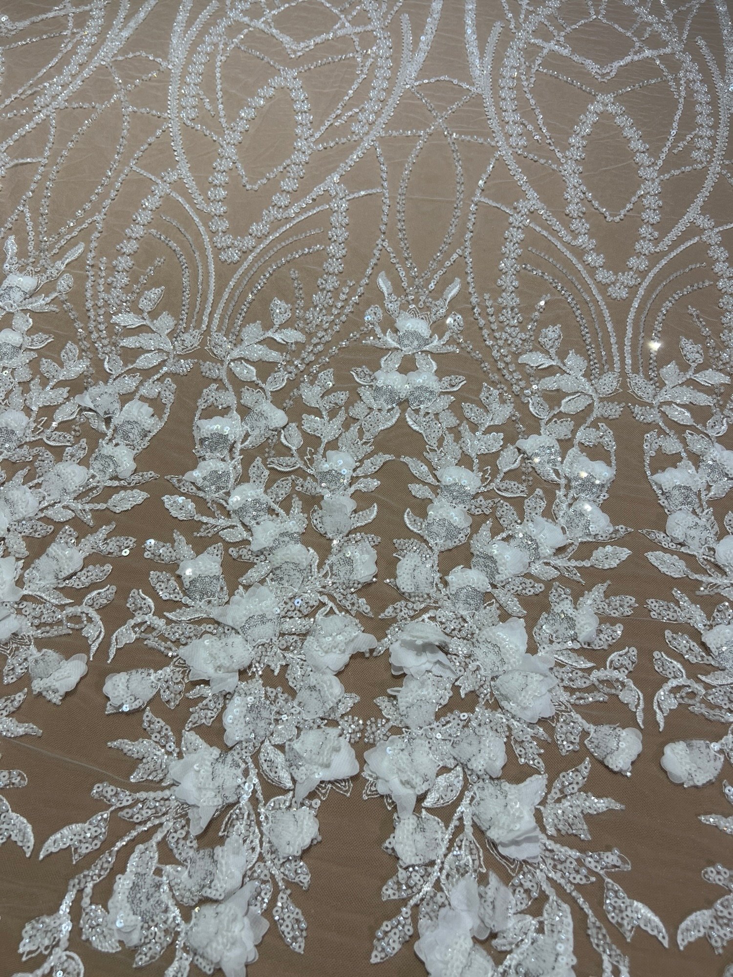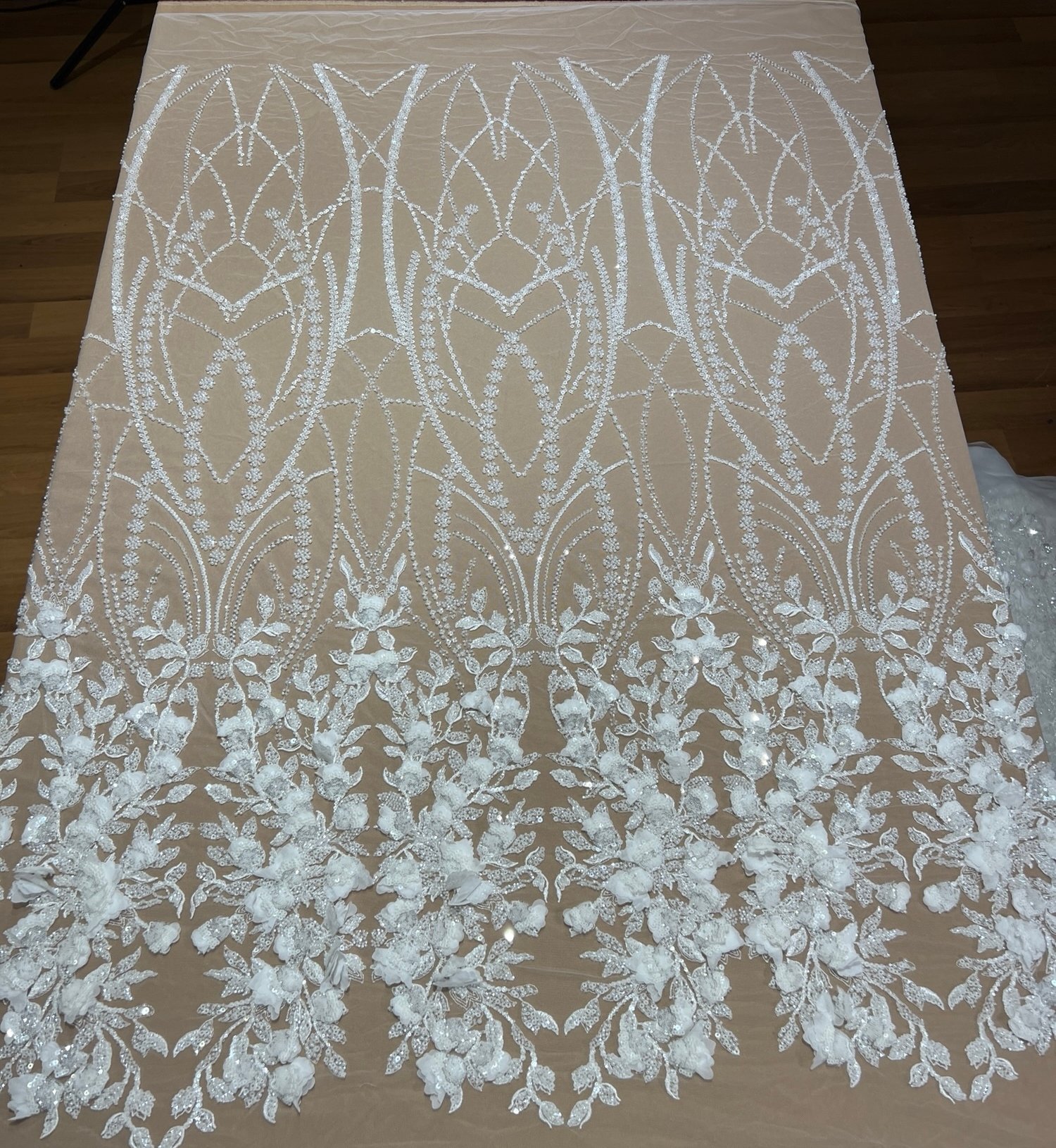 • Texture: Soft lace base with layered 3D botanicals and luminous beadwork